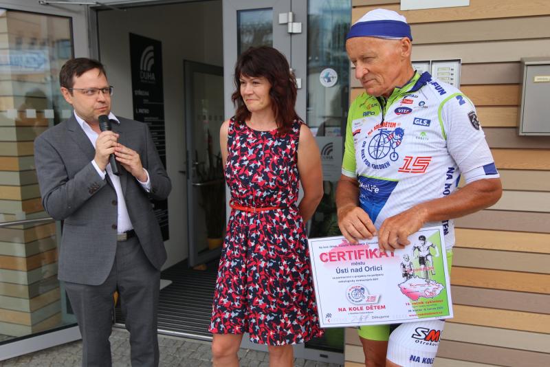 Za nadační fond "Na kole dětem" zde předal Josef Zimončák do rukou místostarosty Jiřího Preclíka pamětní certifikát a poděkoval městu za dar ve výši 15 tisíc korun určený na pomoc onkologicky nemocným dětem. Nadační fond se snaží cílenými aktivitami rozšířit možnosti solidarity, tolik potřebné finanční pomoci a podpory dětí v boji proti zákeřnému onemocnění. Svojí činností se především zaměřuje na sportovní aktivity a zajištění rekondičních pobytů, které usnadňují dětem a jejich rodičům překonávat traumata způsobená těžkou nemocí.