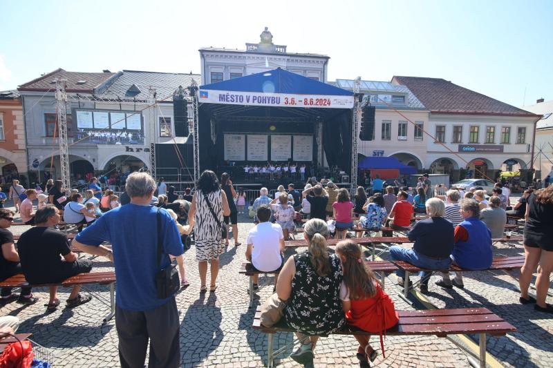 Pátek 7. června byl pátým dnem slavností "Město v pohybu" a přinesl bohatý kulturní program a pestré doprovodné akce, které přilákaly mnoho návštěvníků. Mírové náměstí se stalo centrem dění, kde se již od odpoledne střídala vystoupení místních umělců a škol.