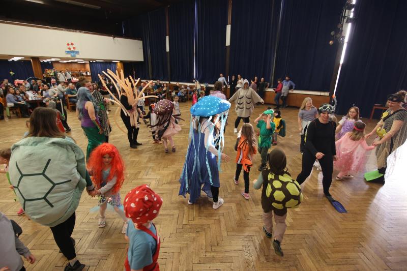 Kostýmy byly pečlivě propracované, od roztomilých klaunů očkatých po obávané hlubinné ryby s velkými zuby. Nechyběla ani chobotnice a dekorace v podobě mořských vln, rybiček a potápěčských doplňků. Celé odpoledne bylo plné zábavy, tance a her.