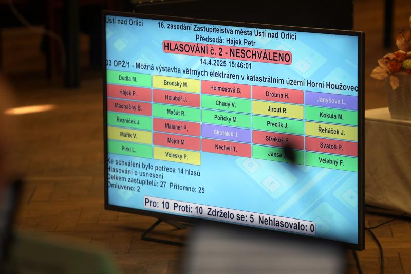 Šestnácté zasedání zastupitelstva, které se konalo dnes v Kulturním domě, projednávalo více než dvacet bodů. Veřejností nejsledovanějším bodem byla možná výstavba větrných elektráren v katastrálním území Horní Houžovec. Samotnému hlasování předcházela rozsáhlá diskuse, záměr nakonec nebyl podpořen.