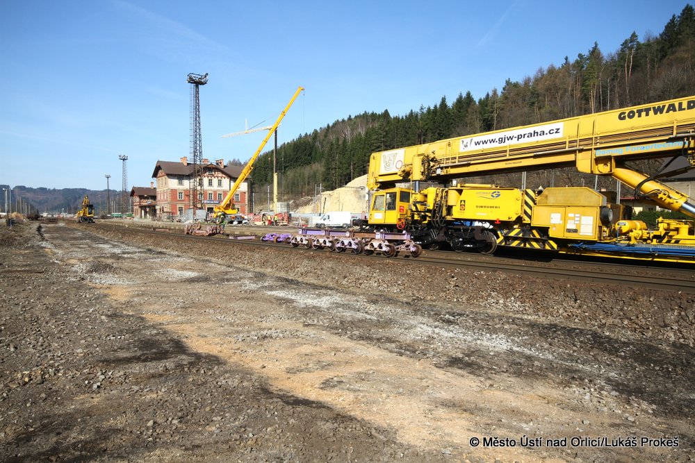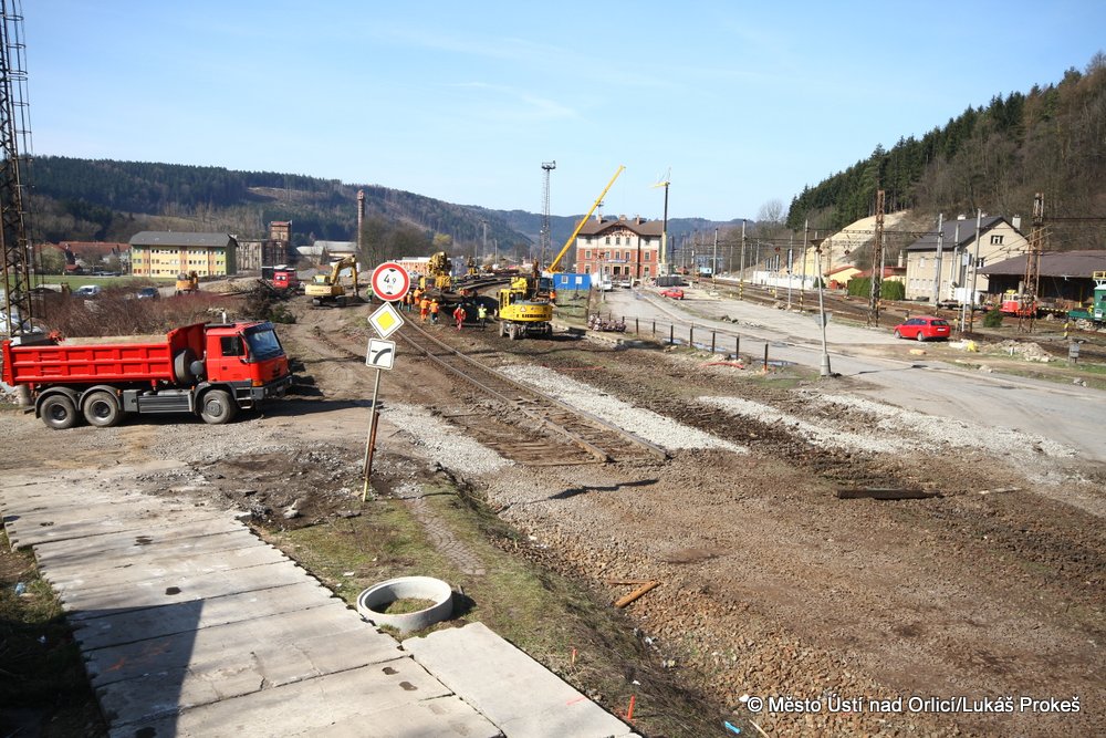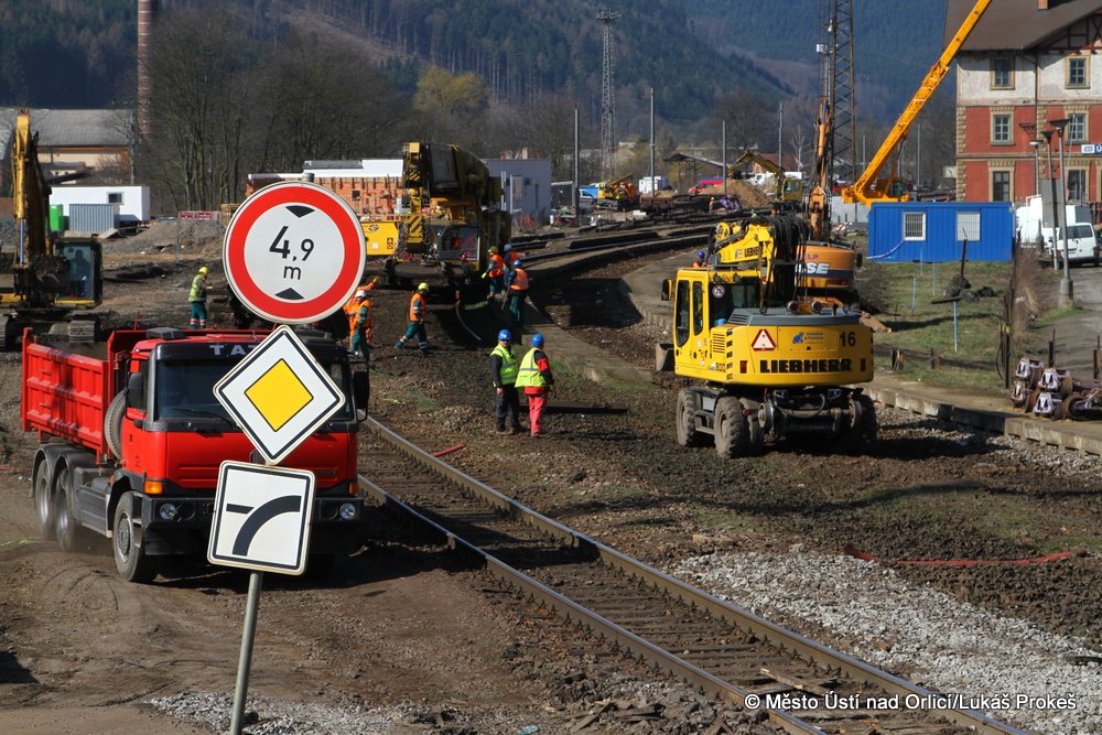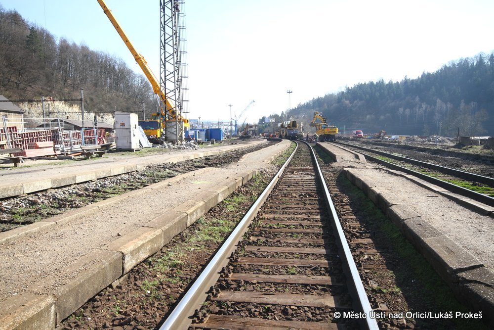 Přinášíme aktuální stav postupu prací na stavbě "Průjezd železničním uzlem Ústí nad Orlicí". V současné době probíhají intenzivní práce na odstraňování kolejového svršku v místě hlavního nádraží. Veškerá železniční doprava jezdí přes letohradskou stranu po jedné koleji. Postupují také práce na stavbě silničního přivaděče a přilehlých komunikací.
