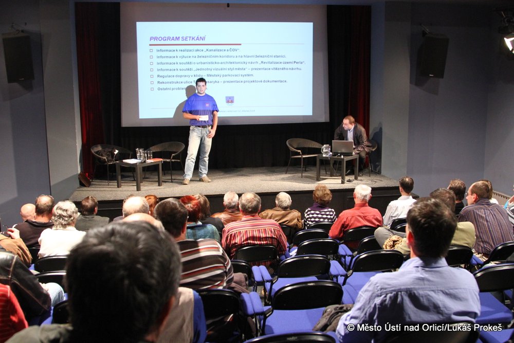 Tradiční setkání vedení města Ústí nad Orlicí s veřejností se uskutečnilo ve středu 12. března v Malé scéně. Na programu setkání byly již dříve avizované body mezi kterými nechyběla prezentace věnovaná výsledkům urbanisticko-architektonické soutěže nazvané "Revitalizace území Perla".