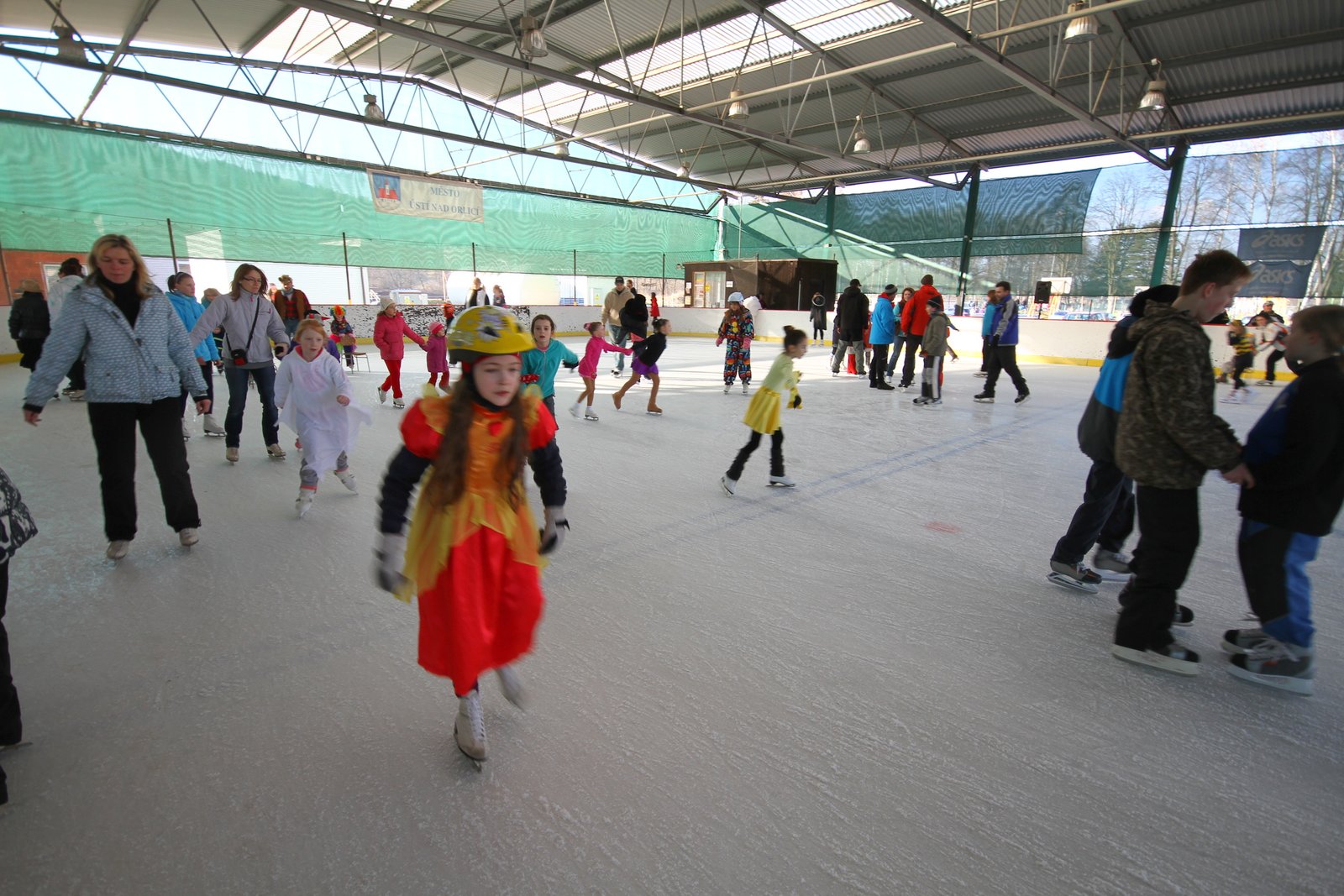 Další z dětských karnevalů ovšem v trochu netypickém provedení, na ledě, připravila v neděli 23. února Církev bratrská na zimním stadionu v Ústí nad Orlicí. Na programu byla řada soutěží a her, přehlídka masek a vystoupení krasobruslařek. Třetí ročník karnevalu na ledě měl u všech velký úspěch . Téměř dokonalým kontrastem k ledovým radovánkám byly tenisté na sousedních kurtech, které sem vylákalo sluníčko a téměř letní teploty. Stejně tak se mohli cítit také domácí fotbaloví dorostenci, kteří na vedlejší umělé trávě sehráli utkání s Českou Třebovou.