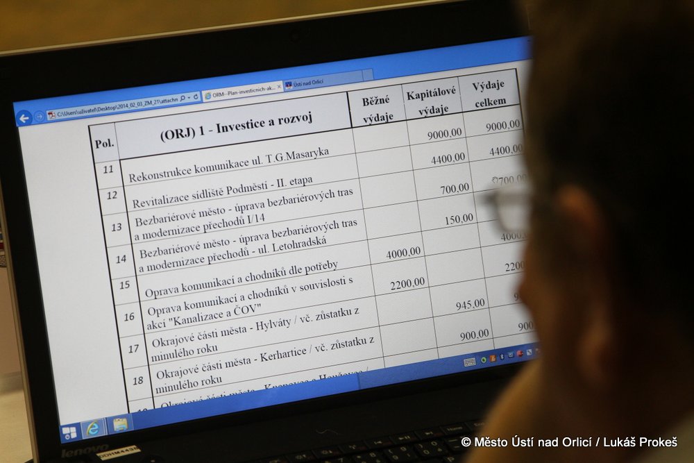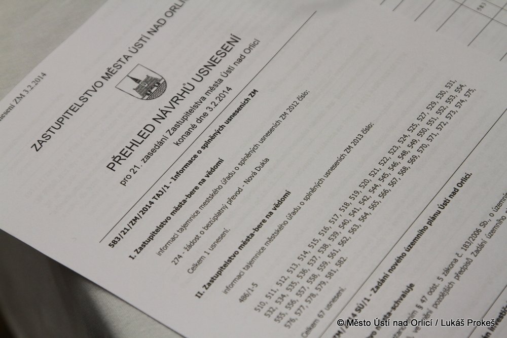 21. zasedání Zastupitelstva města Ústí nad Orlicí se v Kulturním domě uskutečnilo v pondělí 3. února. Hlavním bodem jednání bylo schvalování rozpočtu města na rok 2014. Ten byl schválen v celkové výši 245 milionů korun na straně výdajů a 228 milionů na straně příjmů tedy se schodkem 17,5 milionu korun. Schodek rozpočtu je v podstatě financován z úspor z předchozích let.