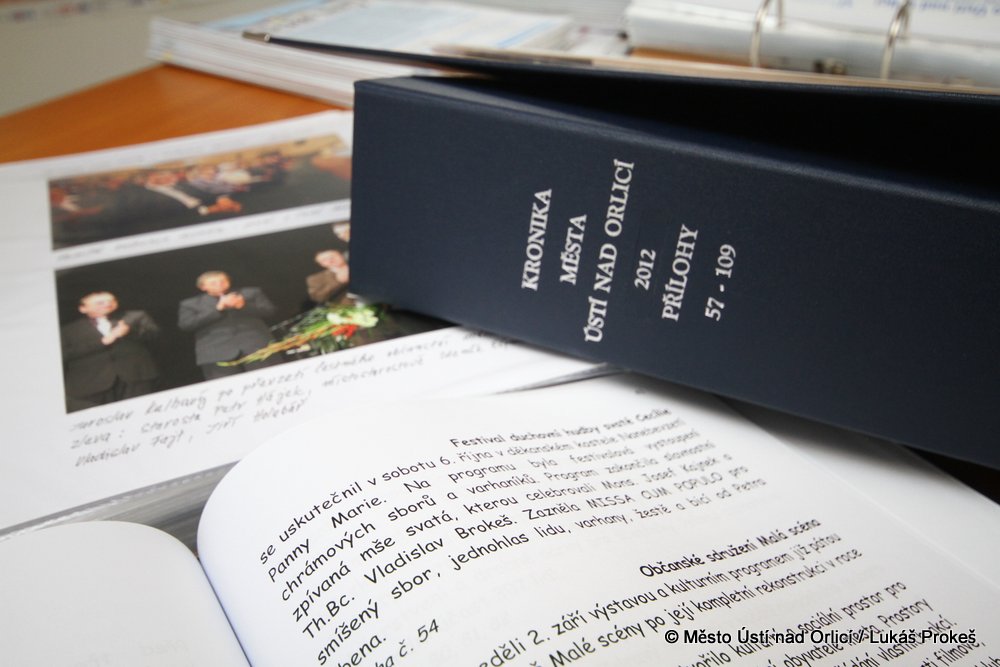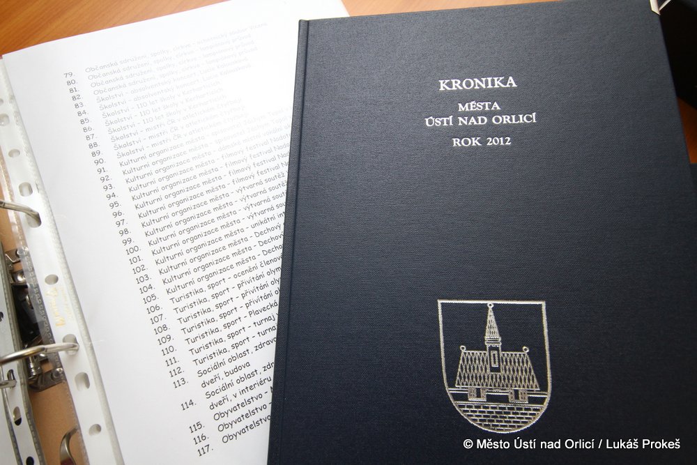 Začátkem prosince byl dokončen roční kronikářský zápis o událostech ve městě Ústí nad Orlicí roku 2012. Kronikářkou je od roku 2012 Marie Steklíková, která převzala pomyslnou štafetu po Věře Sekotové. Současná verze kroniky města je již kompletně zpracovávána na počítači, tištěna a vázána ve formátu A4 a má 73 stran textu. Samostatnou součástí kroniky je dokumentace, která čítá 120 fotografií a 109 evidovaných příloh jako jsou např. pozvánky, plakáty, brožury, noviny či novinové články k popsaným událostem. Poprvé byla kronika prezentována na 20. zasedání Zastupitelstva města Ústí nad Orlicí, kde se s ní seznámili nejen členové zastupitelstva, ale také přítomná veřejnost.