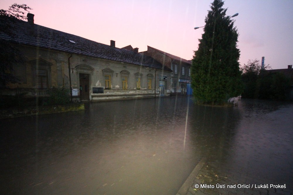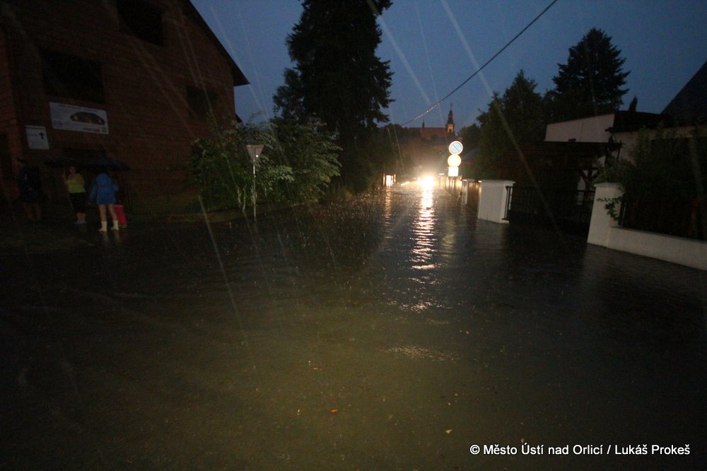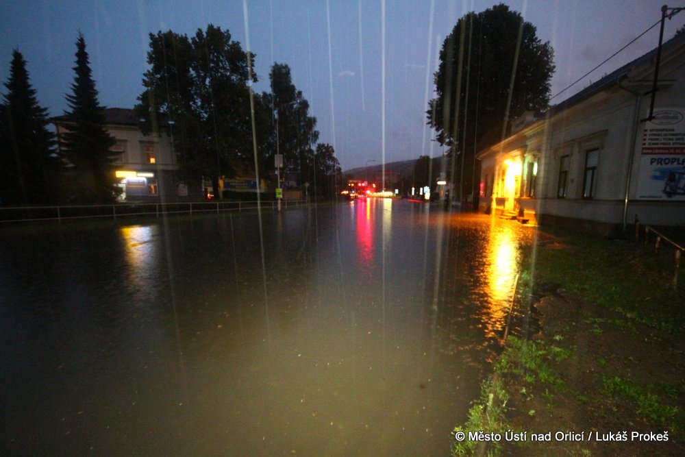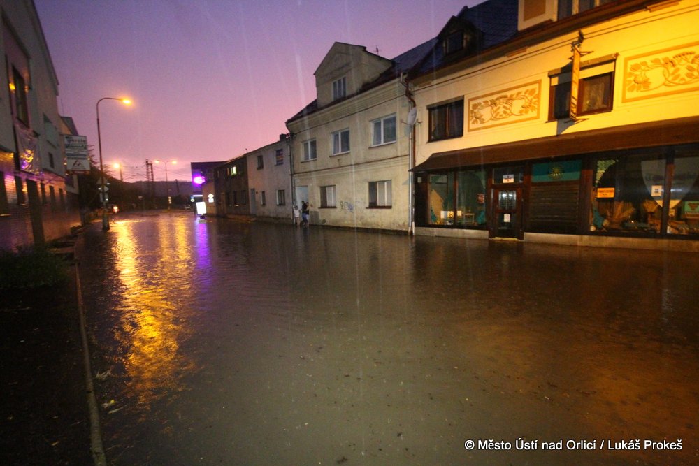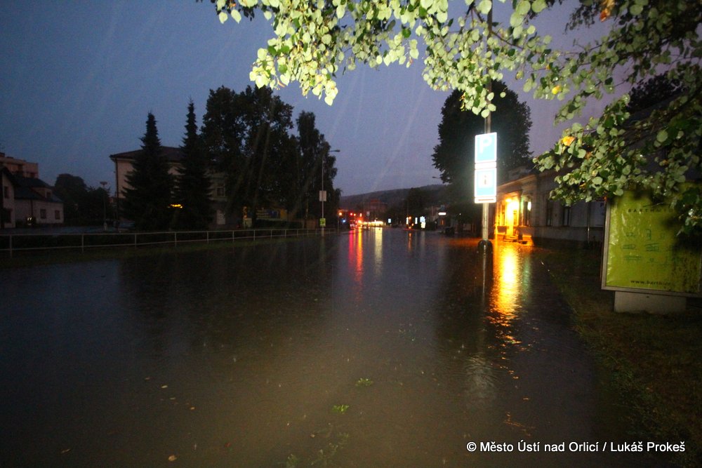 V neděli 4. srpna mezi půl osmou a devátou večer se městem Ústí nad Orlicí prohnala silná průtrž mračen doprovázená silným větrem. Během několika minut byly zaplavena Královehradecká ulice na Podměstí, kde zůstalo uvězněno několik aut. Poplach byl vyhlášen všem jednotkám sborů dobrovolných hasičů města. Ti zasahovali u zatopených aut, ze kterých vyprošťovali několik řidičů včetně malých dětí, které byly v zatopeném vozidle uvězněny. Přívaly vody byly tak silné, že na mnoha místech města nestačila kapacita kanalizace a voda vytlačila kanalizační poklopy.