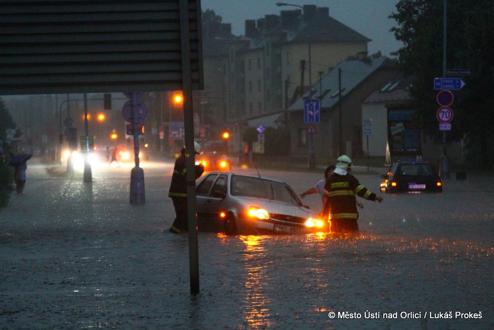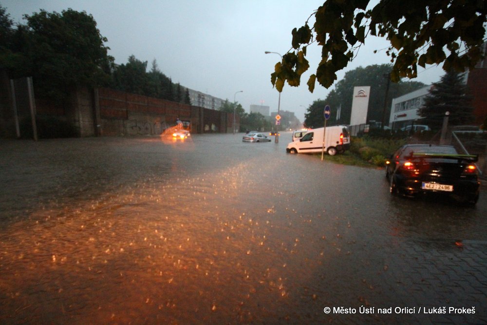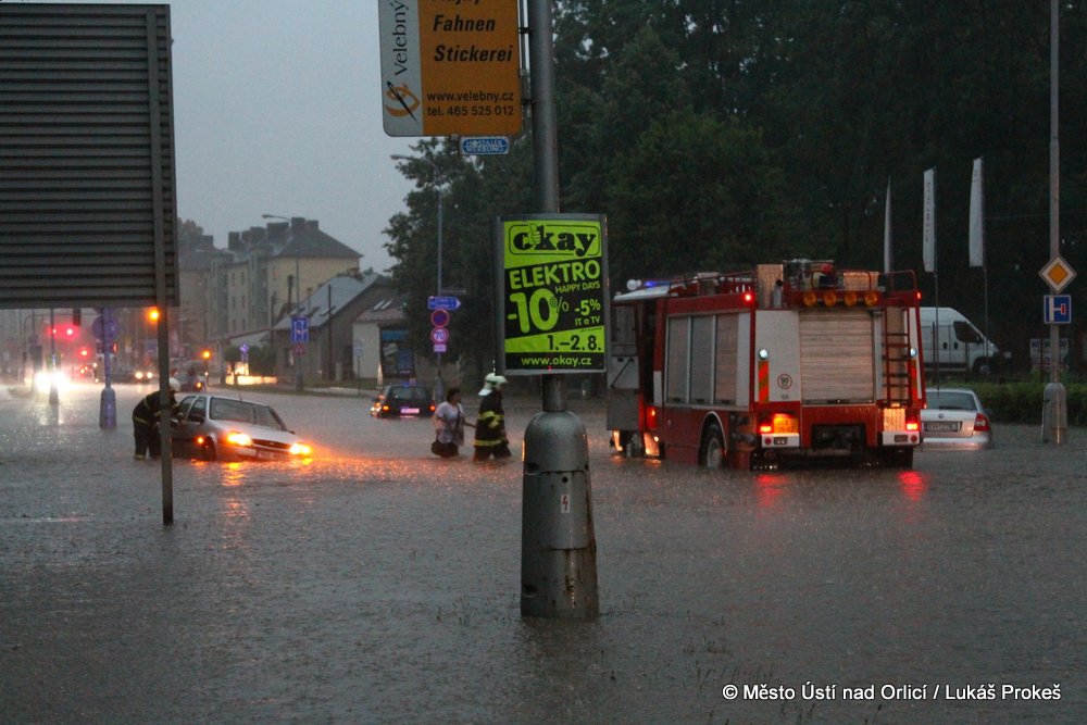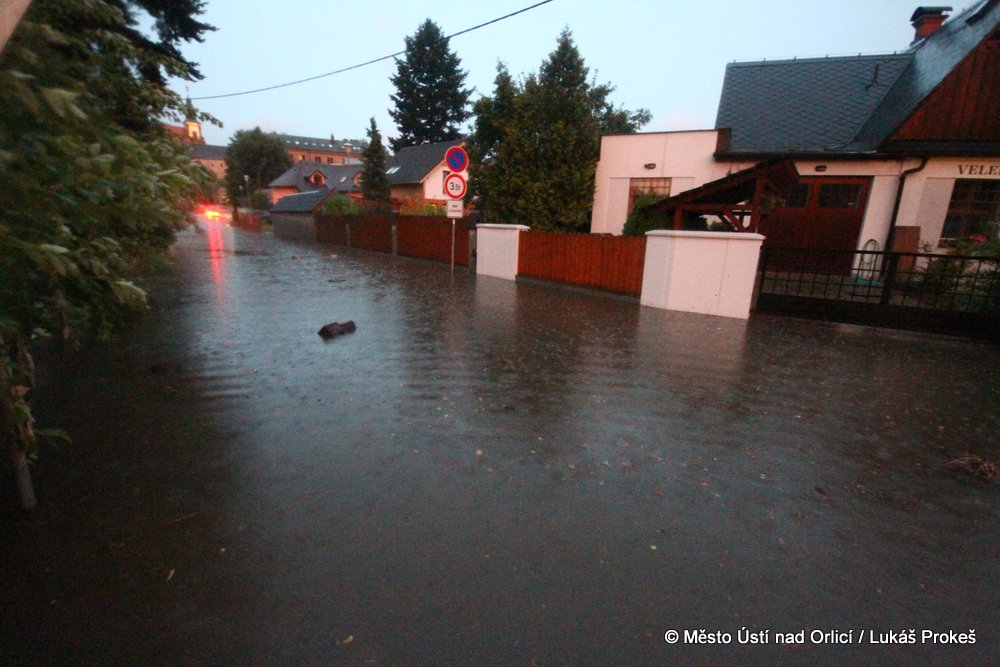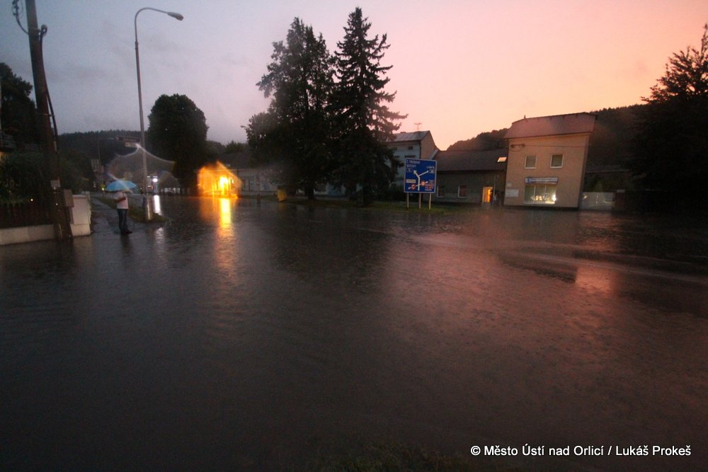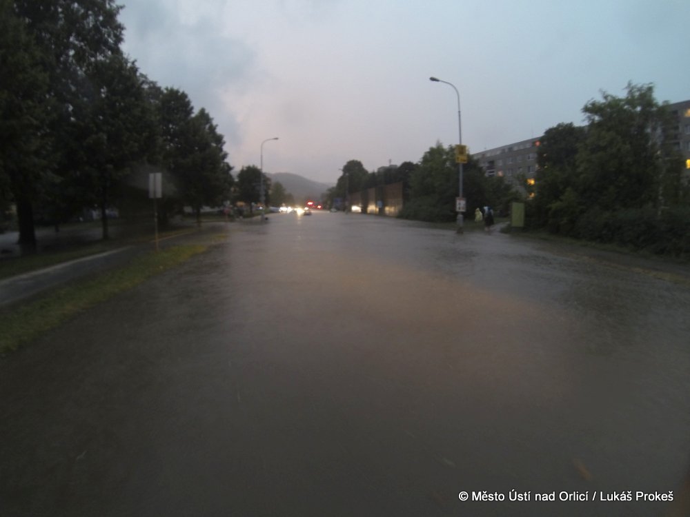 V neděli 4. srpna mezi půl osmou a devátou večer se městem Ústí nad Orlicí prohnala silná průtrž mračen doprovázená silným větrem. Během několika minut byly zaplavena Královehradecká ulice na Podměstí, kde zůstalo uvězněno několik aut. Poplach byl vyhlášen všem jednotkám sborů dobrovolných hasičů města. Ti zasahovali u zatopených aut, ze kterých vyprošťovali několik řidičů včetně malých dětí, které byly v zatopeném vozidle uvězněny. Přívaly vody byly tak silné, že na mnoha místech města nestačila kapacita kanalizace a voda vytlačila kanalizační poklopy.