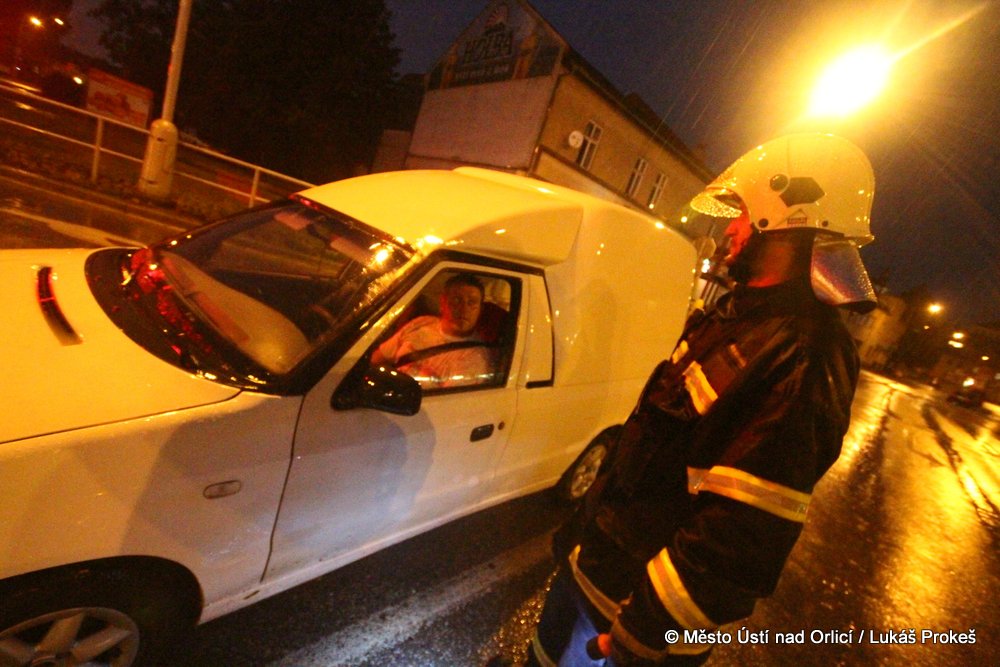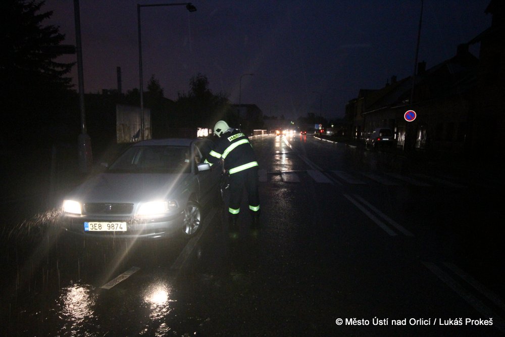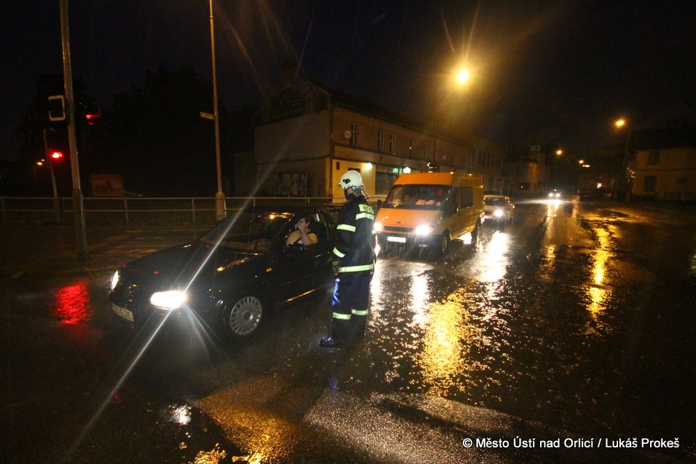 Až do poklesu hladiny řídili dobrovolní hasiči a městská policie dopravu u zatopených komunikací.