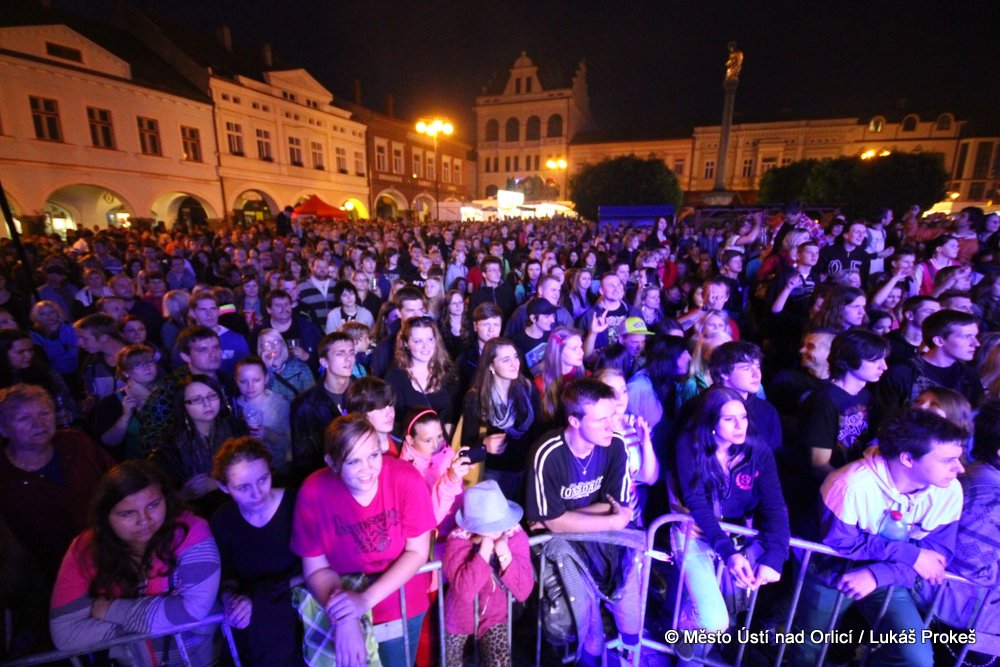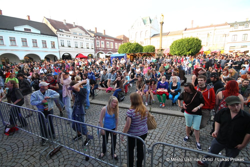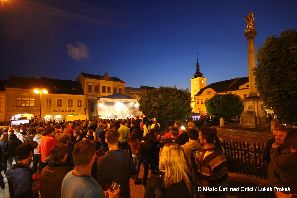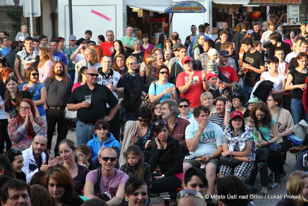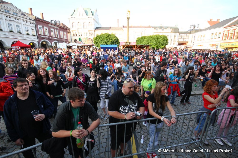 Na Mírovém náměstí se v průběhu odpoledne a podvečera vystřídalo 5 rockových skupin. Večer pak patřil vystoupení kapely COCOTTE MINUTE a náměstí zcela zaplnilo vystoupí kapely UDG. Ta u převážně mladých diváků způsobila doslova davové šílenství. Celý páteční program zakončila kapela ZUPPER.