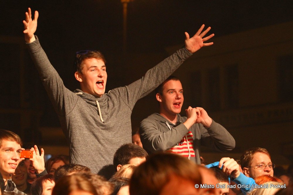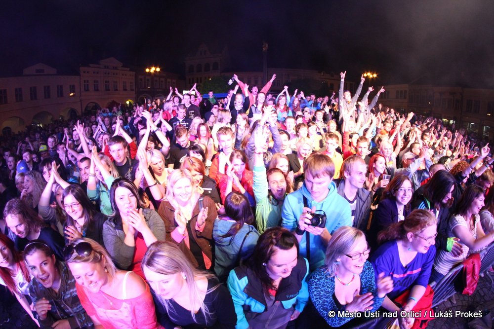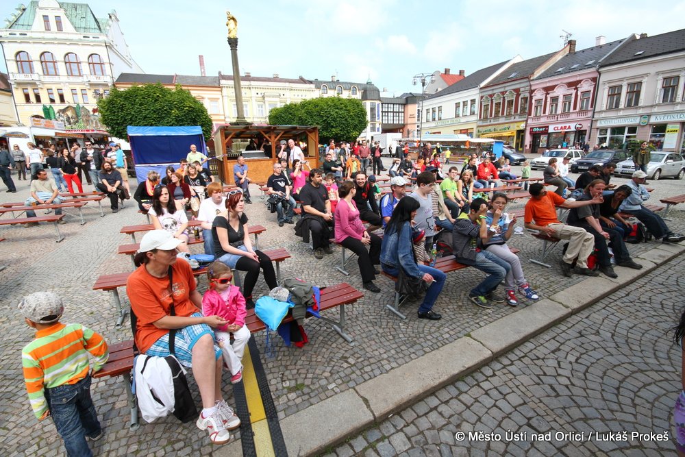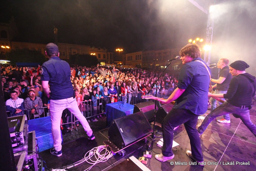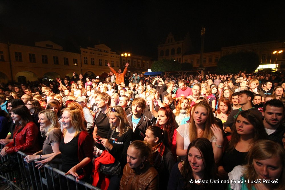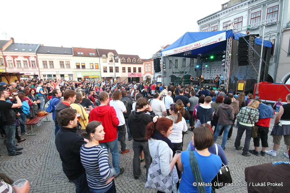 Na Mírovém náměstí se v průběhu odpoledne a podvečera vystřídalo 5 rockových skupin. Večer pak patřil vystoupení kapely COCOTTE MINUTE a náměstí zcela zaplnilo vystoupí kapely UDG. Ta u převážně mladých diváků způsobila doslova davové šílenství. Celý páteční program zakončila kapela ZUPPER.