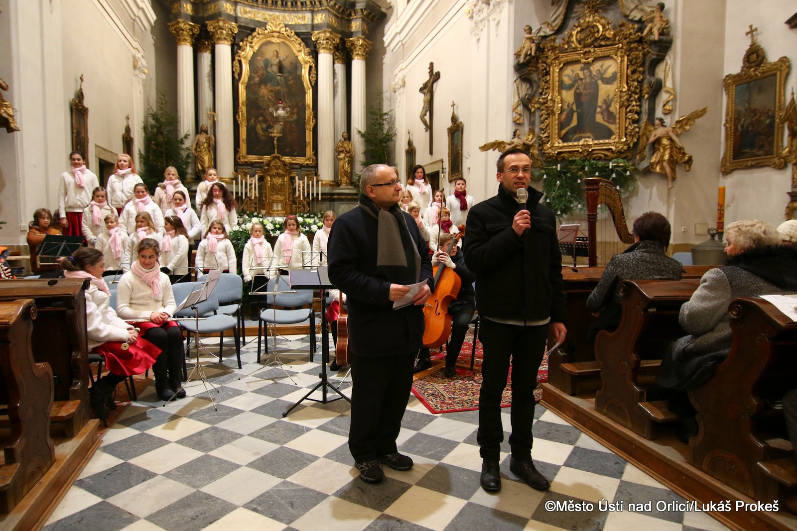 Tradiční koncert, který se v kostele konal již po deváté, zahájil pěvecký sbor Čtyřlístek s krkonošskými koledami následovaný sborem ústeckého gymnázia. Završením podvečera bylo provedení České mše vánoční "Hej, mistře" od Jakuba Jany Ryby v podání šesti sborů nejen z Ústí nad Orlicí a symfonického orchestru Decapoda.