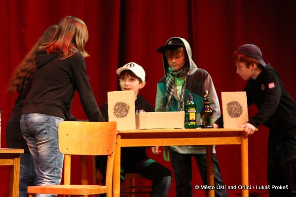 Již tradičně si všechny třídy gymnázia připravily patnáctiminutové scénky na předem daná témata. Oproti předchozím letům byla změna v tom, že si třídy témata nelosovaly, ale byla pevně daná. Nižší stupně si připravily scénky na téma „souboj dobra se zlem" a pro vyšší stupně bylo připraveno téma „technická revoluce". Studenti si musí napsat scénář a připravit vše, co je potřeba na krátké divadelní představení do 15 minut.