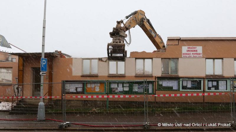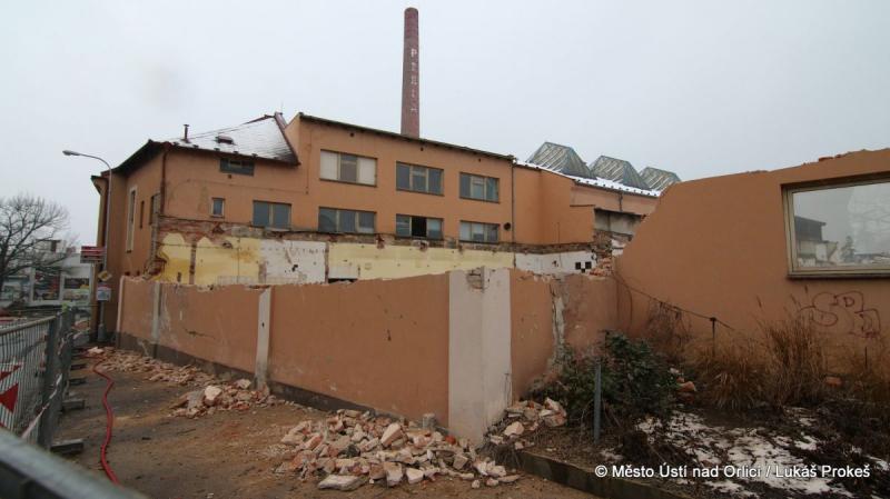 V neděli 17. prosince postoupily práce na demolici areálu PERLY 01 do ulice 17. listopadu. Tato ulice tak po desítkách let zásadně mění svou tvář. Demoliční bagry se "zakously" do posledních obvodových zdí a s chirurgickou přesností třídí a rozebírají poslední části. Následovat budou demoliční práce podlah a základů.