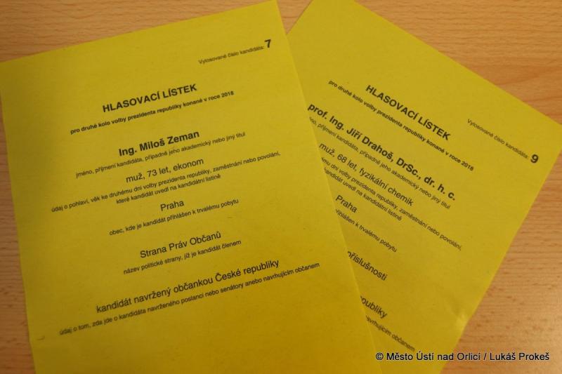 V rámci 2. kola volby prezidenta republiky, které se konalo ve dnech 26. - 27. ledna, dosáhla volební účast v Ústí nad Orlicí průměrně 68,29 procent. Na 17 okrscích v našem městě dorazilo k urnám celkem 7672 z 11 235 voličů.