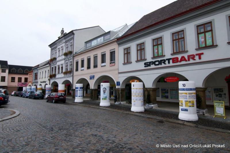 Všechny volební strany dostaly také možnost vylepit své volební plakáty na samostatných plochách ve spodní části Mírového náměstí na betonových válcích označených číslem volební strany, které registrační úřad určil losem.