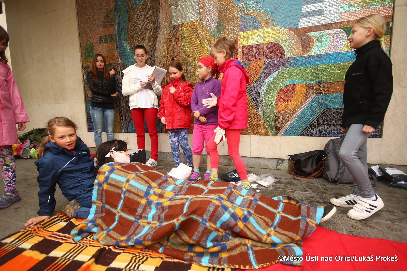 Pro děti bylo připraveno několik soutěžních stanovišť s první pomocí, kde musely prokázat své znalosti při ošetření různých poranění. Ošetřovaly např. odřeniny, cizí těleso v ráně, zástavu dechu a další. Dále musely prokázat znalosti z obvazové techniky, dopravy postižených nebo znalosti z dopravní výchovy.