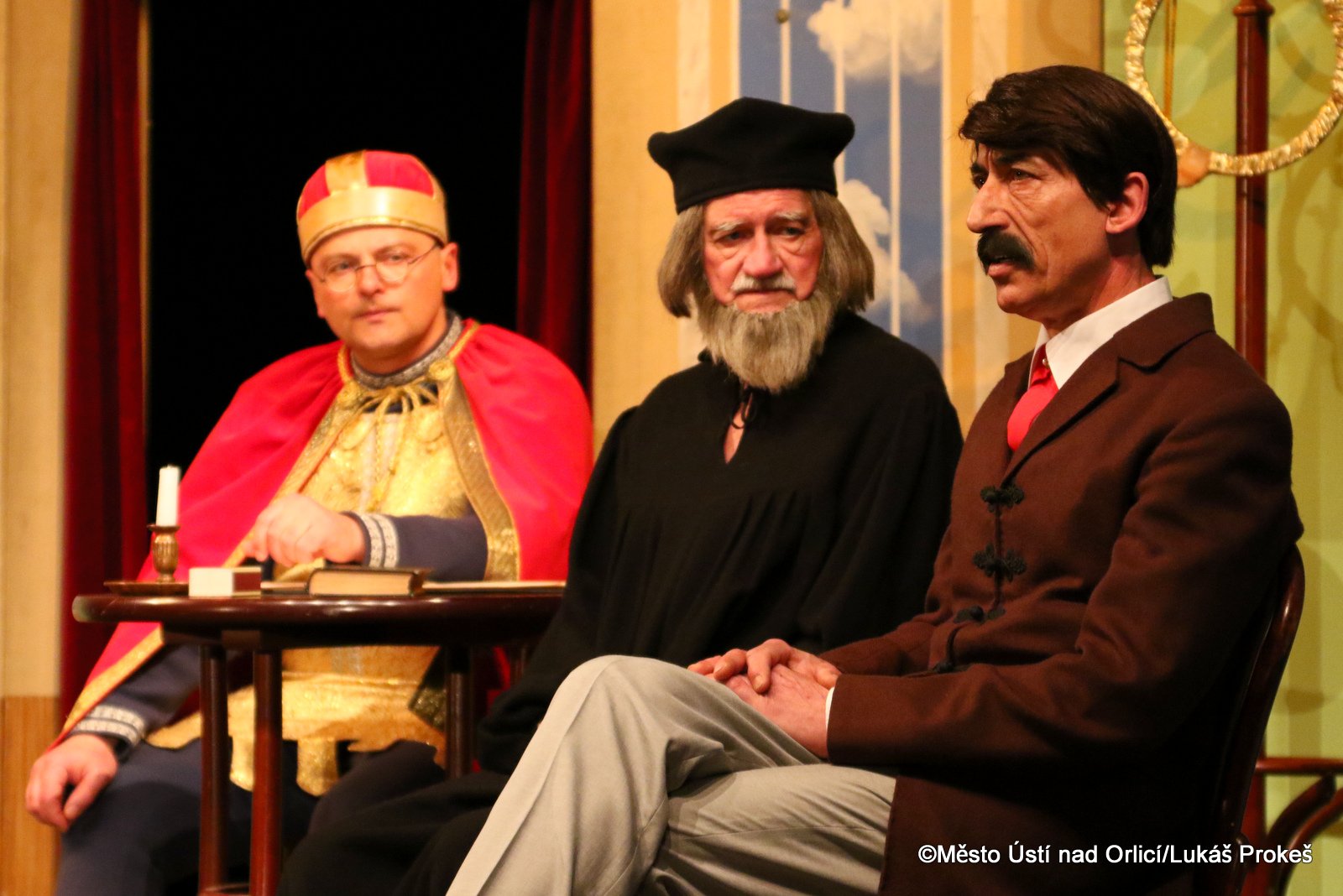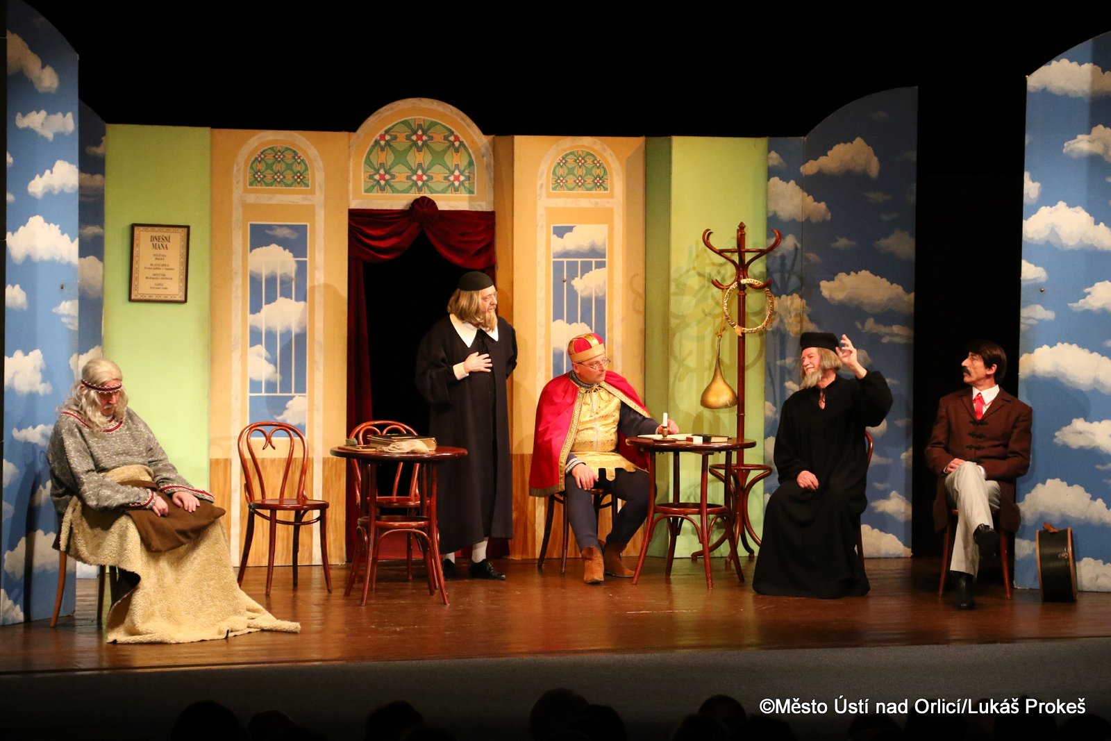 Před zcela zaplněným hledištěm Roškotova divadla vystoupilo v sobotu 14. března Divadlo Járy Cimrmana s Cimrmanovým dramatickým kšaftem nazvaným ČESKÉ NEBE. Hra, která měla premiéru v říjnu 2008 se do našeho města vrátila po šesti letech. V první části programu byl připraven, jak je zvykem, úvodní referát o životě a díle Járy Cimrmana v podání Miloně Čepelky a dalších herců.   Následovalo Cimrmanovo drama zachycující dobu, kdy na zemi propukla 1. světová válka. Divák ji sleduje z nebe, kde se dávno mrtví velikáni českých dějin strachují o osud svého lidu. Česká nebeská komise ve složení svatý Václav, praotec Čech a J.A.Komenský se v krizové situaci rozšiřuje o nové členy, aby vnukla národu myšlenku samostatného státu.   Divadlo Járy Cimrmana nezklamalo a představení všechny diváky výborně bavilo.
