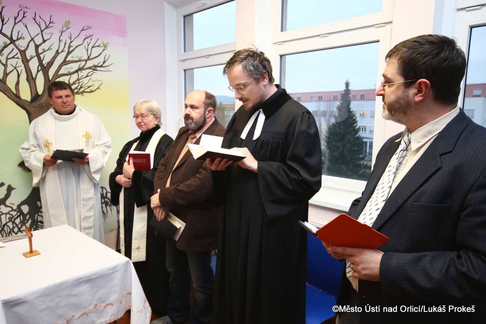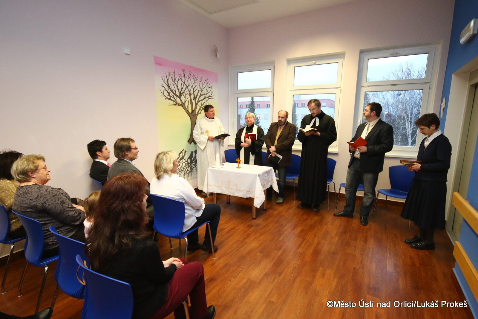 Nově vzniklé prostory pro duchovní péči v Orlickoústecké nemocnici požehnali v pátek 16. ledna při Ekumenické bohoslužbě. Orlickoústecká nemocnice se snaží poskytovat ucelenou péči, proto byl také ve 3. patře budovy interního oddělení vytvořen prostor klidu – ztišení, které převyšuje nemocniční ruch. Prostor klidu je určen pro společné bohoslužby, pro osobní rozhovory duchovních s pacienty a je pietním místem pro důstojné rozloučení rodiny se zemřelým. Návrh kresby a její provedení, ktreré umělecky dotvořilo zaměření místnosti, provedla Základní umělecká škola v Ústí nad Orlicí. Na finančním zajištění spolupracovala nemocnice se sponzory.