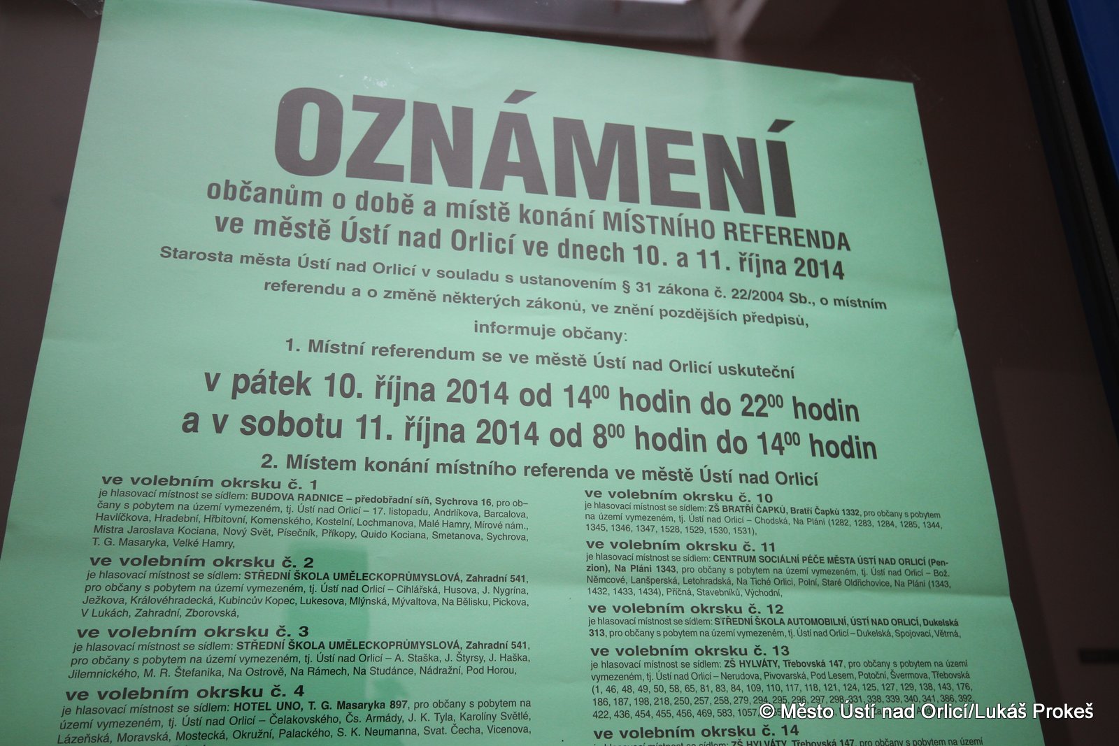 V pátek 10. října ve 14 hodin se otevřely volební místnosti pro volby do zastupitelstev města a obcí. Podle aktuálních informací přesáhla volební účast v komunálních volbách 20 procent. Konkrétně to v 18 hodin bylo 20,31 procenta na všech 17 okrscích v Ústí nad Orlicí. Některé okrsky v tuto dobu přesáhly již 24 procent. Co se týká místního referenda statistika průběžné volební účasti se nehlásí.