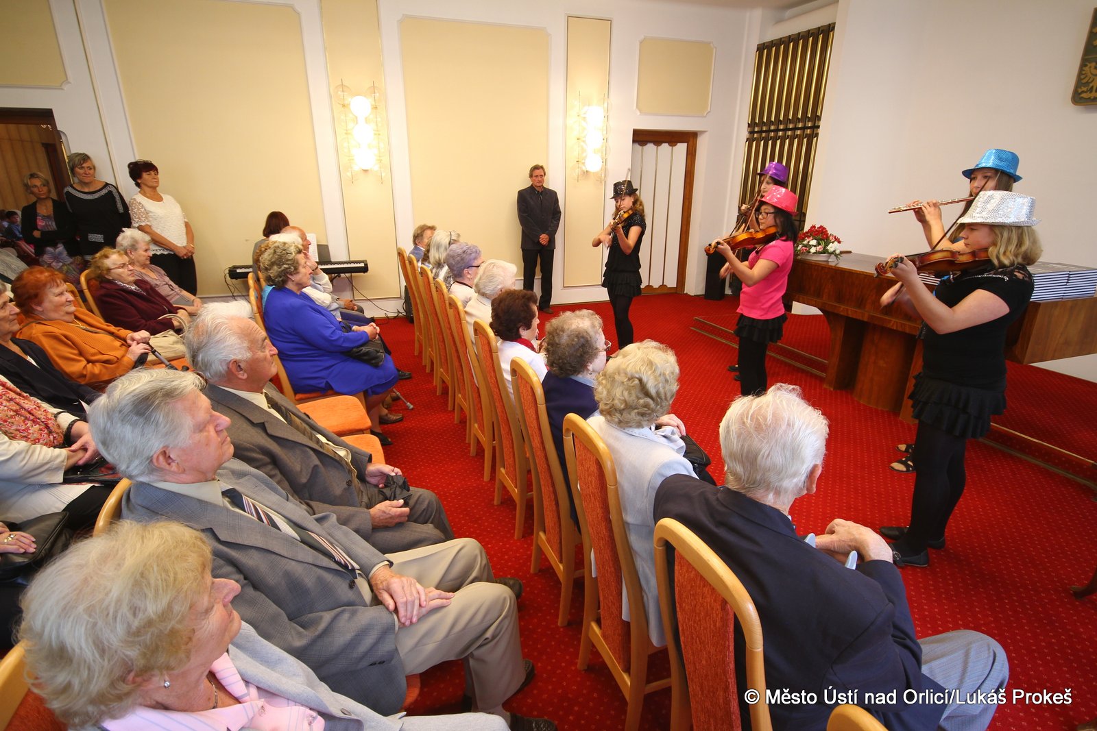 V úterý 23. září v odpoledních hodinách se již tradičně uskutečnilo setkání obyvatel města Ústí nad Orlicí, kteří v letošním roce dovršili 80 let věku. Slavnostní přijetí starostou města Petrem Hájkem proběhlo v obřadní síni naší radnice. V letošním roce bylo pozváno celkem 91 oslavenců, zúčasnilo se jich 48, ostatní se omluvili ze zdravotních nebo jiných důvodů. Program byl obohacen vystoupením dětí z Mateřské školy Heranova v Ústí nad Orlicí a žáků Základní umělecké školy v Ústí nad Orlicí.