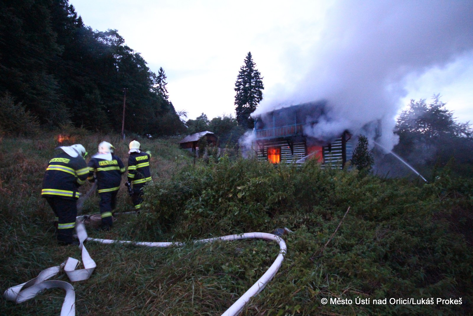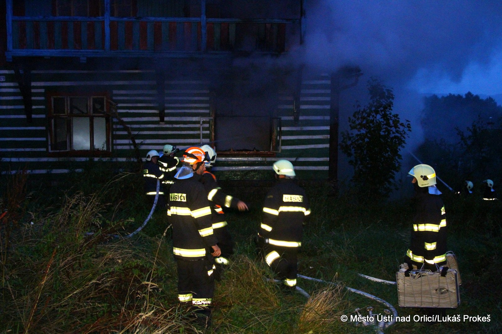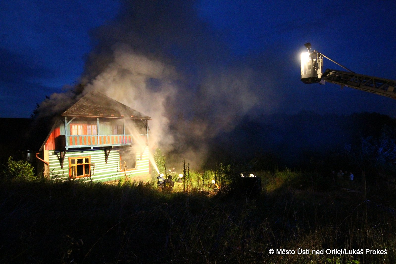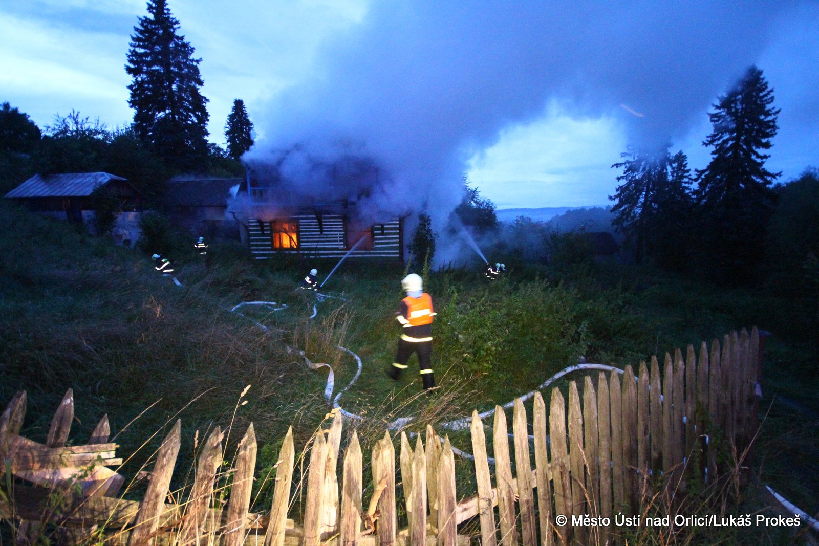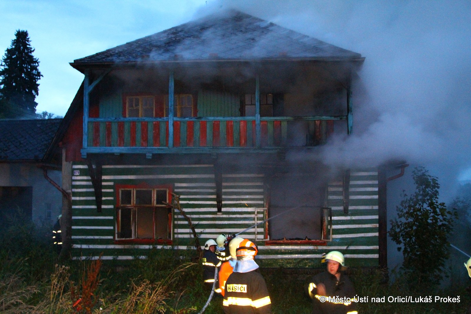 Dnes krátce po 20 hodině byl na operační středisko HZS ohlášen požár domu č.p. 879 v zahrádkářské kolonii na "Americe" v Ústí nad Orlicí. Na místo ihned vyjeli hasiči HZS Ústí nad Orlicí, drážní hasiči z České Třebové a jednotky SDH Ústí nad Orlicí I, Černovír a Hylváty. V plamenech se ocitl opuštěný dřevený dům vévodící zahrádkářské kolonii. Rozsáhlý požár hasiče zaměstnal a bylo třeba zahájit dopravu vody na místo požáru. Ještě po 22 hodině neměli hasiči požár zcela pod kontrolou a stále probíhá jeho hašení. Podle prvních informací se může jednat o požár založený úmyslně nebo z nedbalosti.