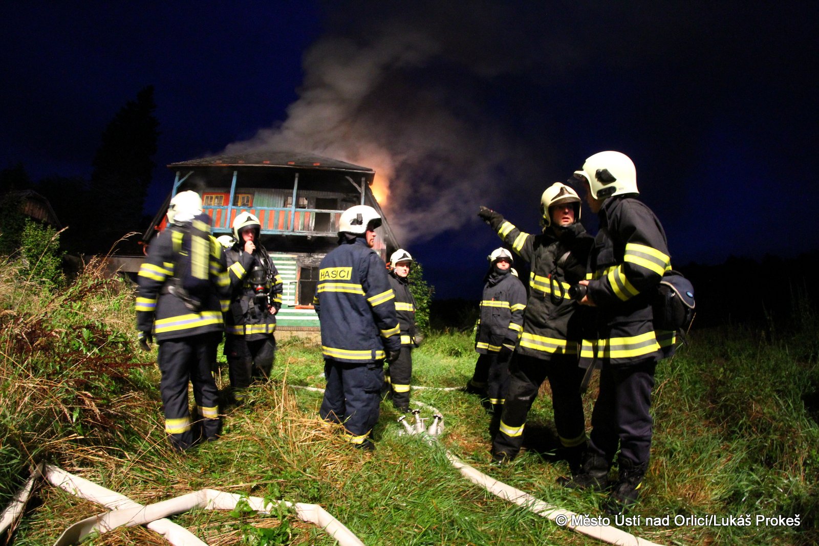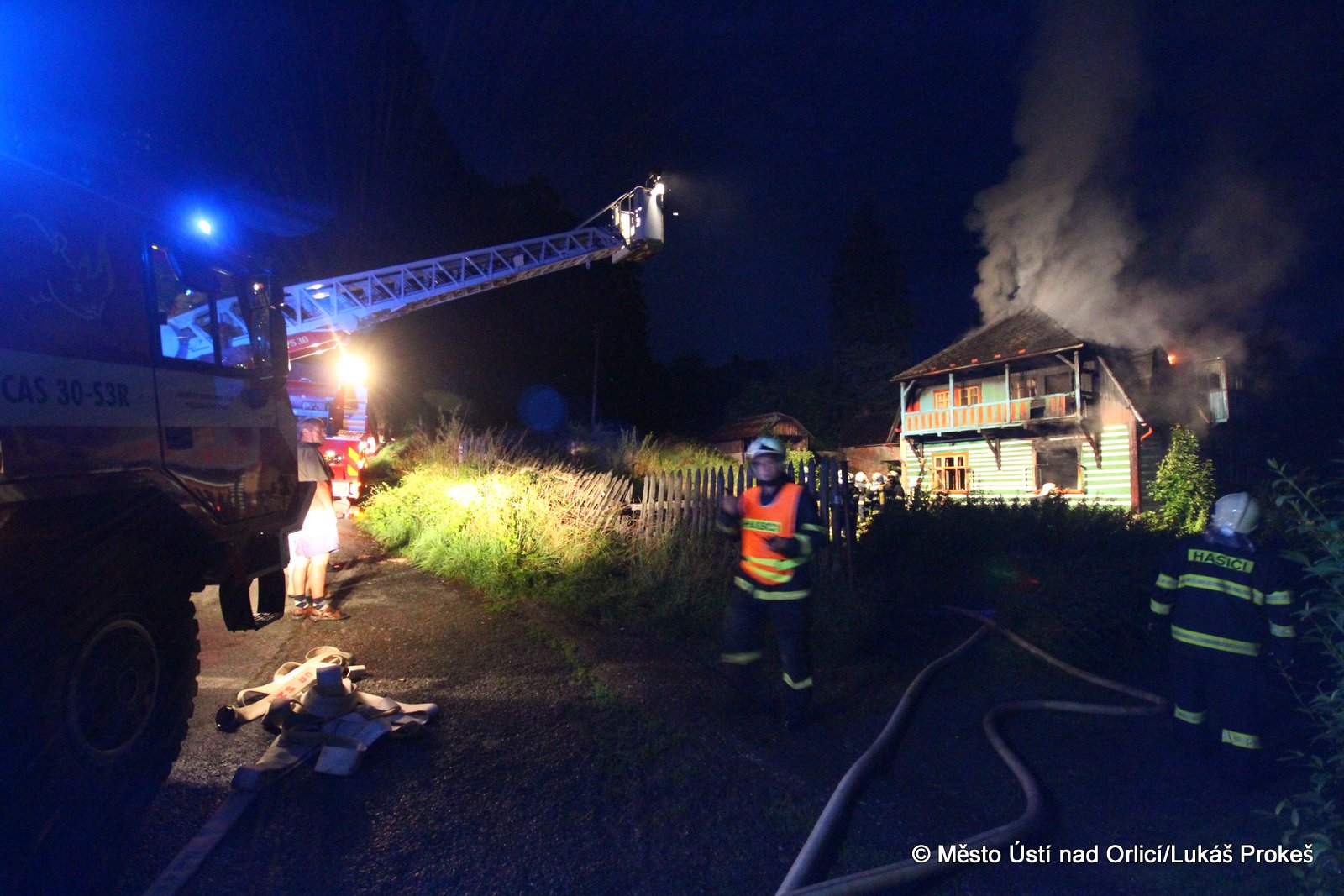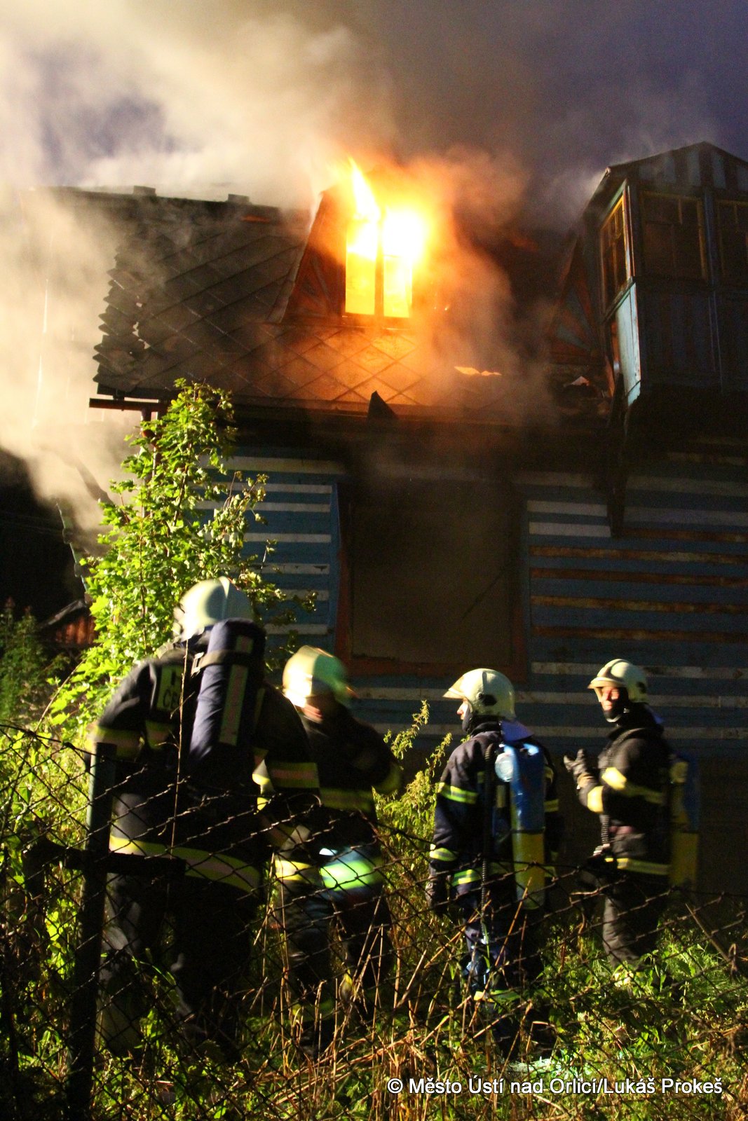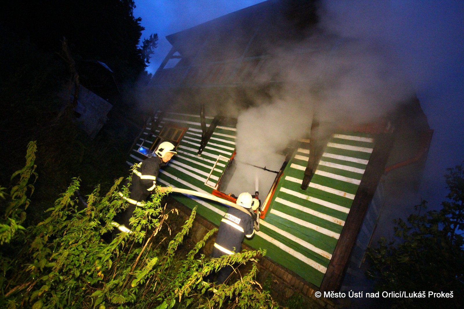 Dnes krátce po 20 hodině byl na operační středisko HZS ohlášen požár domu č.p. 879 v zahrádkářské kolonii na "Americe" v Ústí nad Orlicí. Na místo ihned vyjeli hasiči HZS Ústí nad Orlicí, drážní hasiči z České Třebové a jednotky SDH Ústí nad Orlicí I, Černovír a Hylváty. V plamenech se ocitl opuštěný dřevený dům vévodící zahrádkářské kolonii. Rozsáhlý požár hasiče zaměstnal a bylo třeba zahájit dopravu vody na místo požáru. Ještě po 22 hodině neměli hasiči požár zcela pod kontrolou a stále probíhá jeho hašení. Podle prvních informací se může jednat o požár založený úmyslně nebo z nedbalosti.