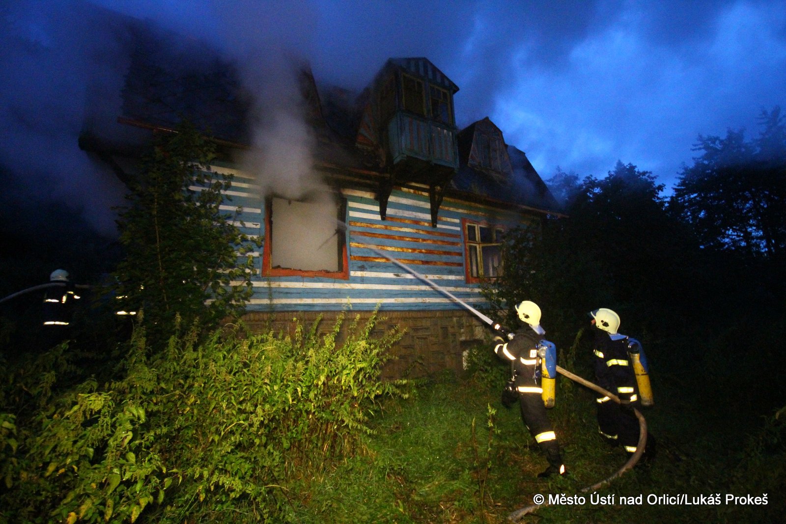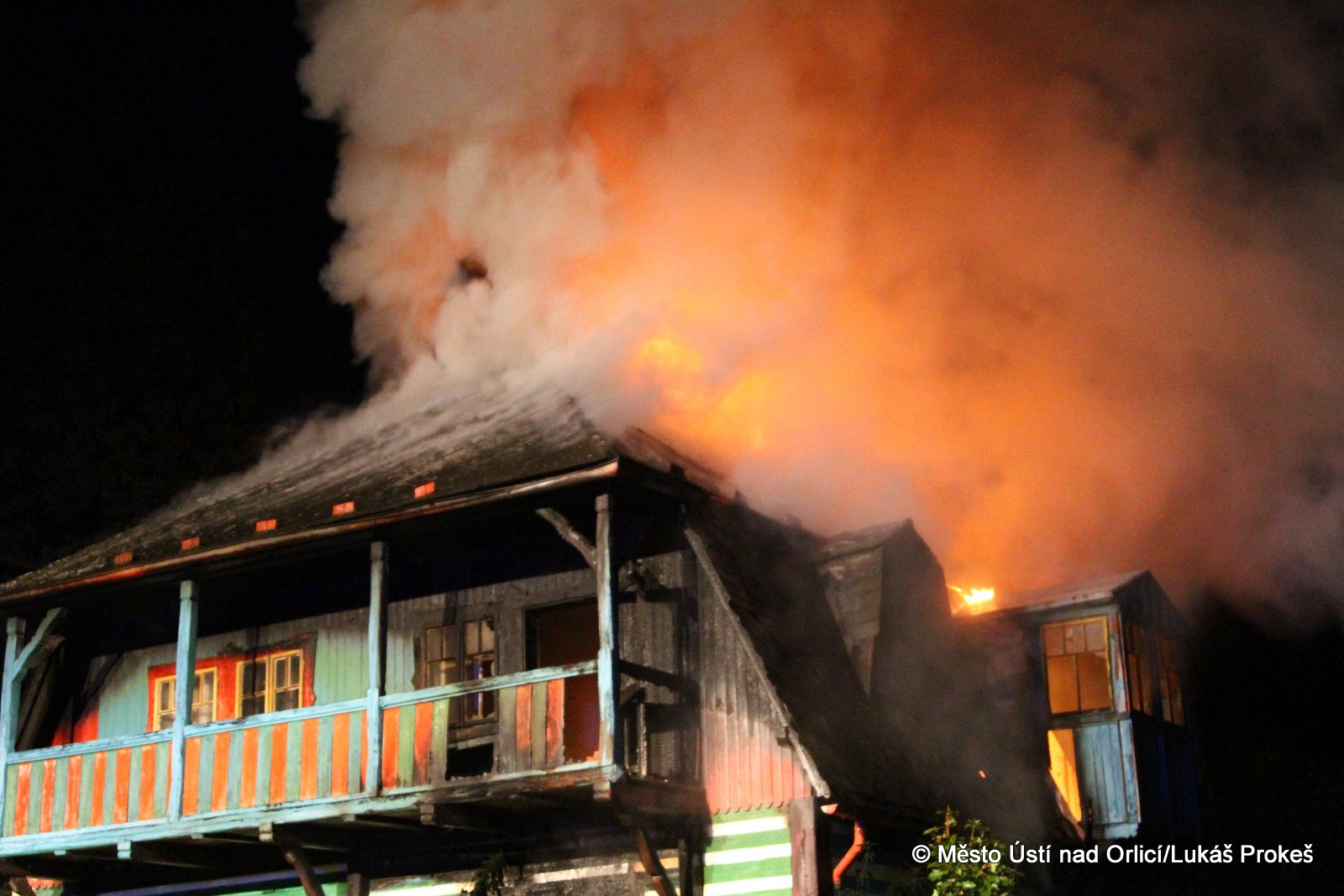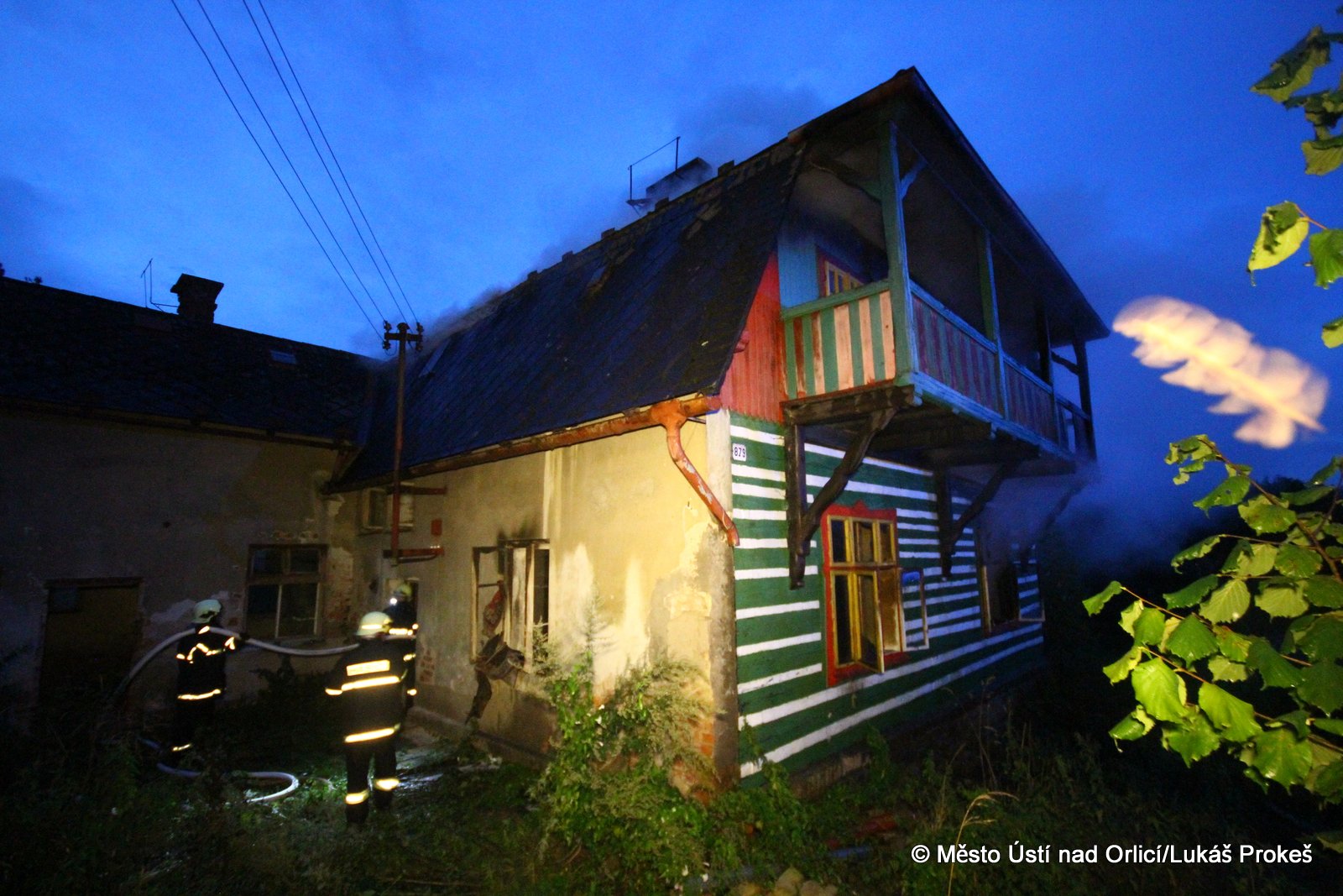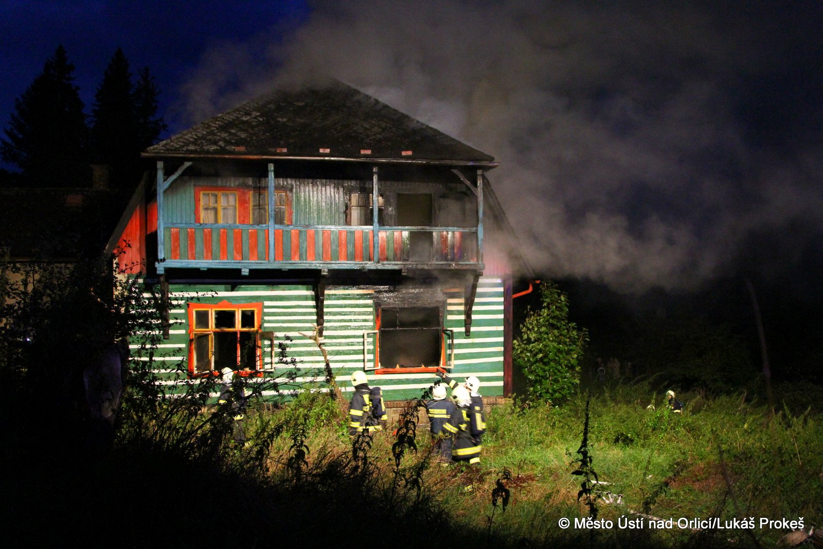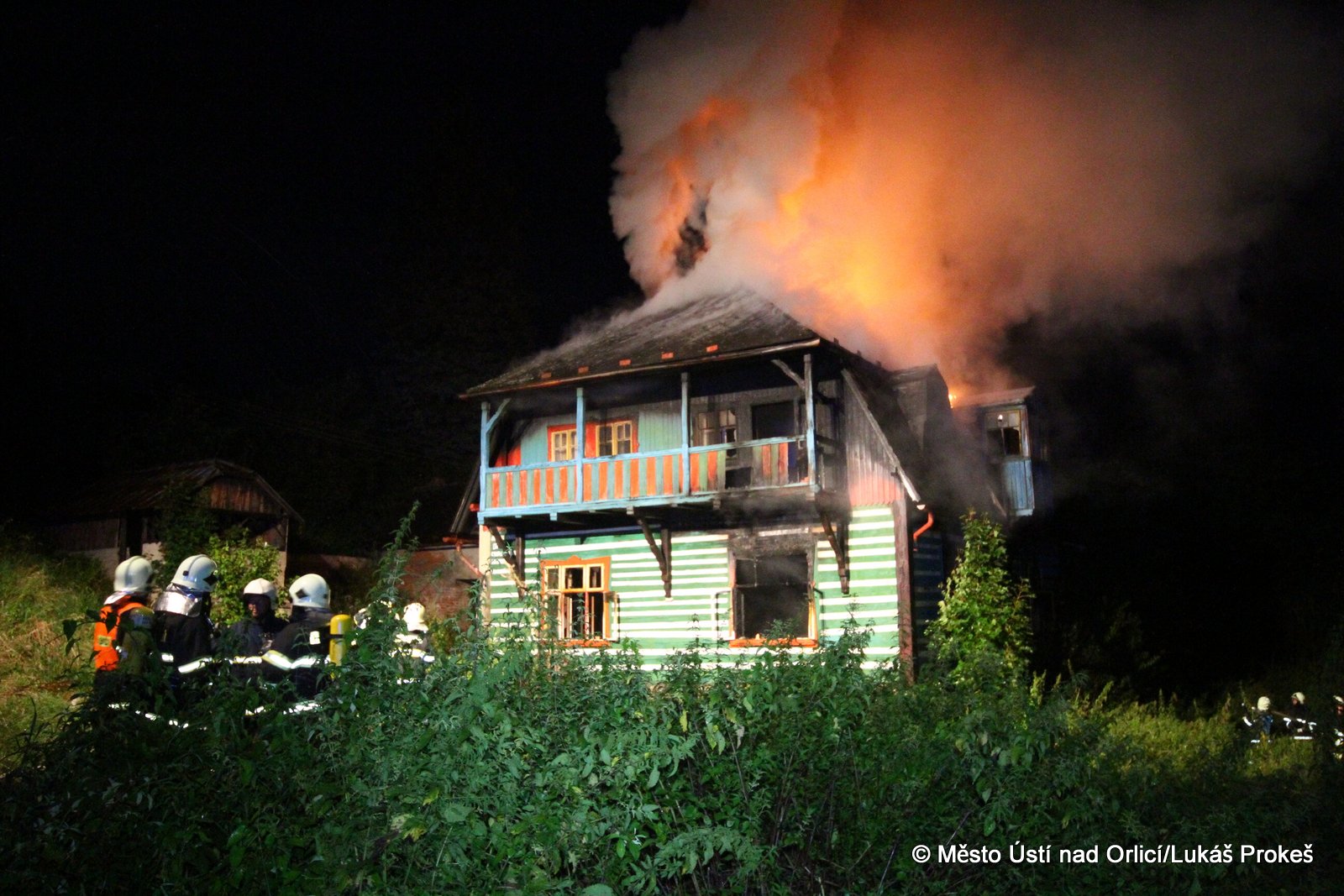 Dnes krátce po 20 hodině byl na operační středisko HZS ohlášen požár domu č.p. 879 v zahrádkářské kolonii na "Americe" v Ústí nad Orlicí. Na místo ihned vyjeli hasiči HZS Ústí nad Orlicí, drážní hasiči z České Třebové a jednotky SDH Ústí nad Orlicí I, Černovír a Hylváty. V plamenech se ocitl opuštěný dřevený dům vévodící zahrádkářské kolonii. Rozsáhlý požár hasiče zaměstnal a bylo třeba zahájit dopravu vody na místo požáru. Ještě po 22 hodině neměli hasiči požár zcela pod kontrolou a stále probíhá jeho hašení. Podle prvních informací se může jednat o požár založený úmyslně nebo z nedbalosti.