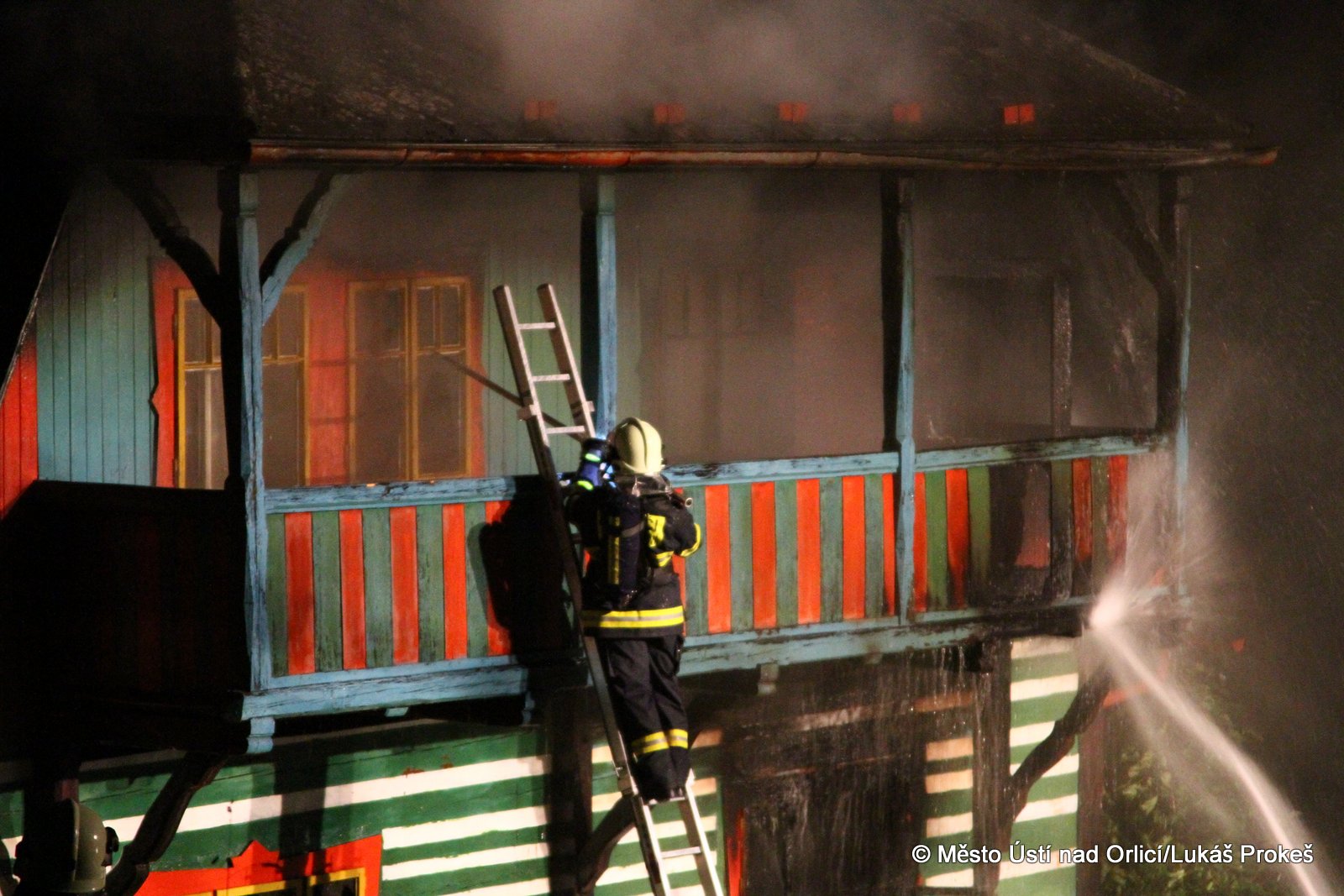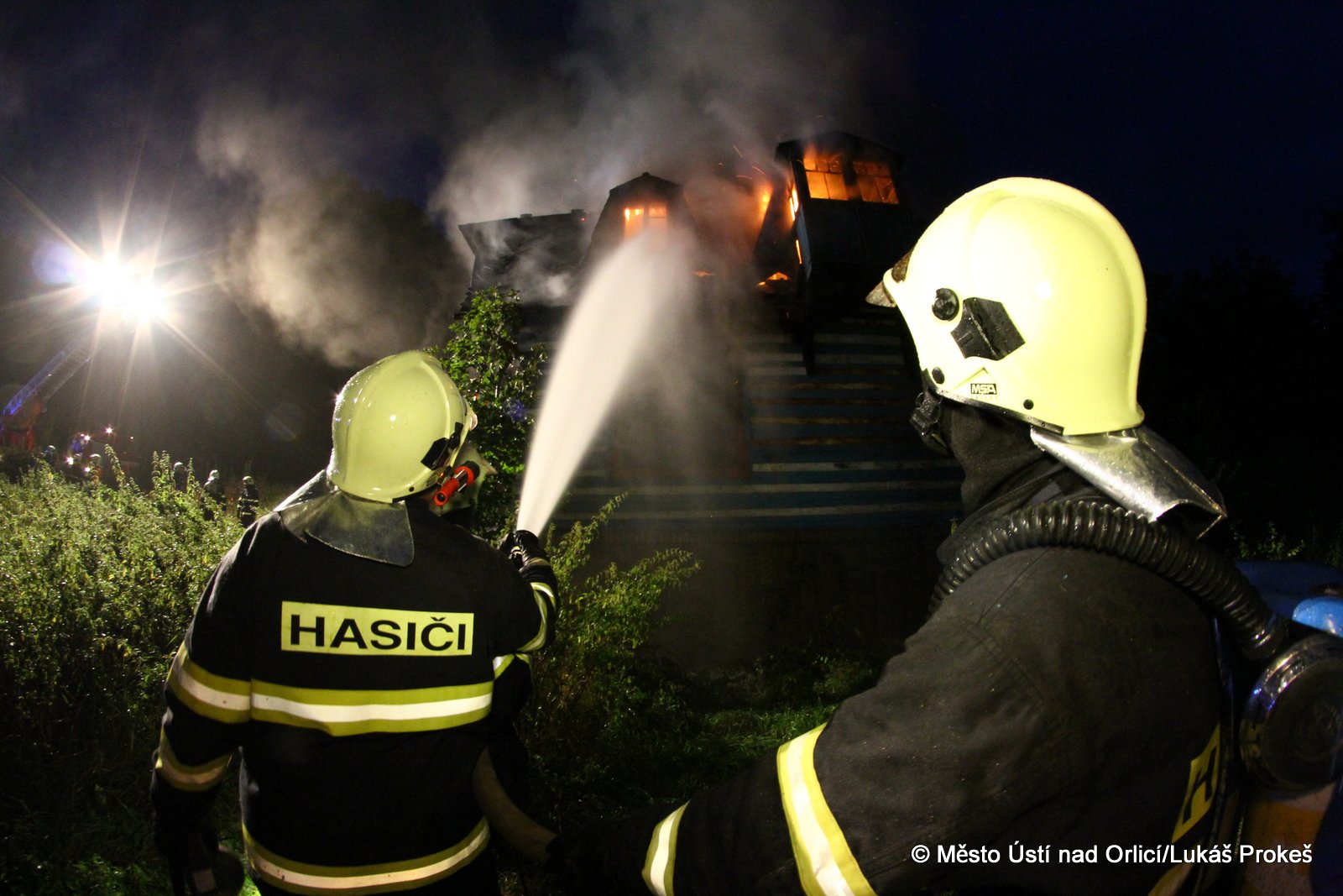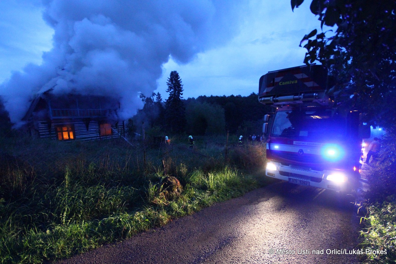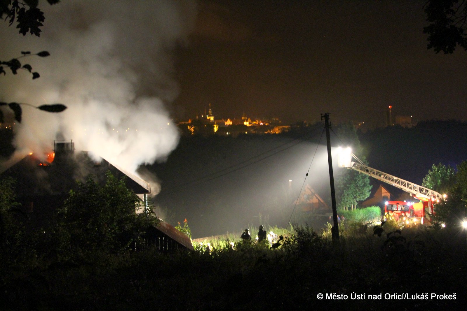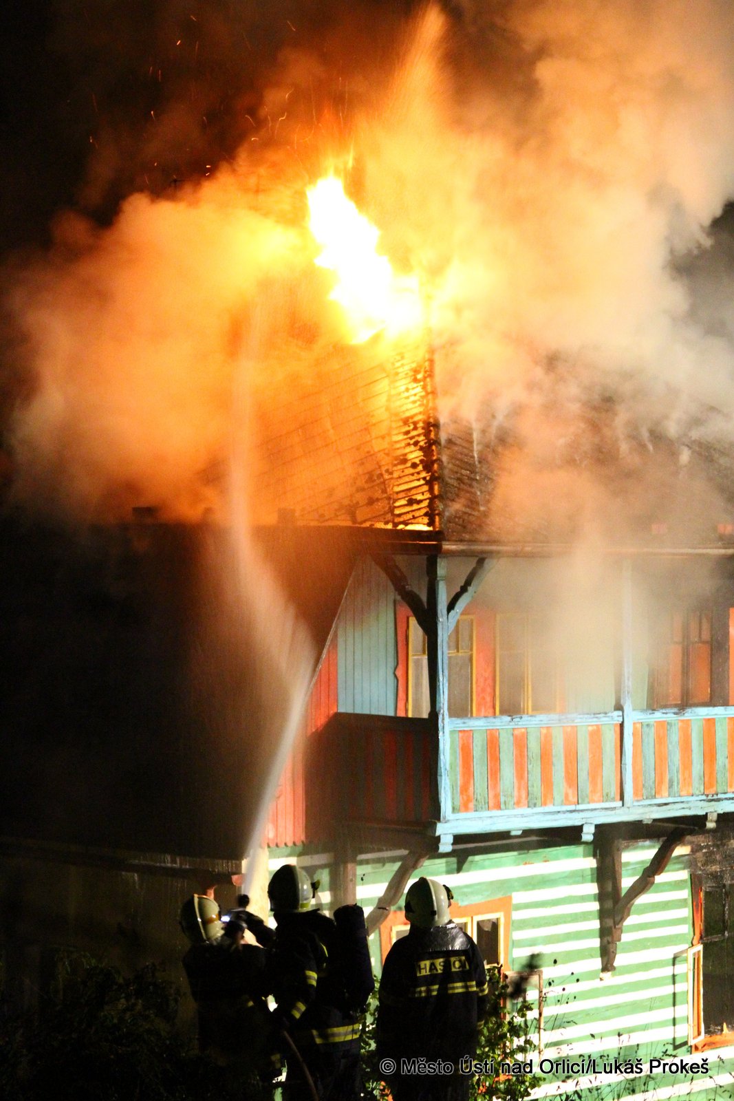 Dnes krátce po 20 hodině byl na operační středisko HZS ohlášen požár domu č.p. 879 v zahrádkářské kolonii na "Americe" v Ústí nad Orlicí. Na místo ihned vyjeli hasiči HZS Ústí nad Orlicí, drážní hasiči z České Třebové a jednotky SDH Ústí nad Orlicí I, Černovír a Hylváty. V plamenech se ocitl opuštěný dřevený dům vévodící zahrádkářské kolonii. Rozsáhlý požár hasiče zaměstnal a bylo třeba zahájit dopravu vody na místo požáru. Ještě po 22 hodině neměli hasiči požár zcela pod kontrolou a stále probíhá jeho hašení. Podle prvních informací se může jednat o požár založený úmyslně nebo z nedbalosti.
