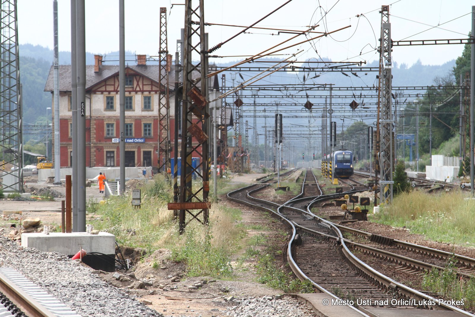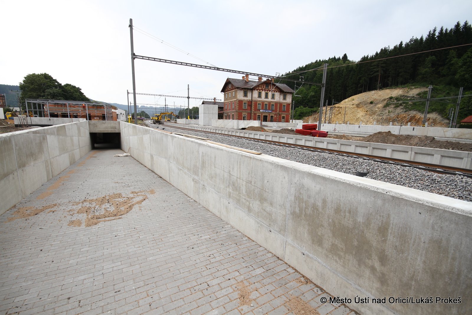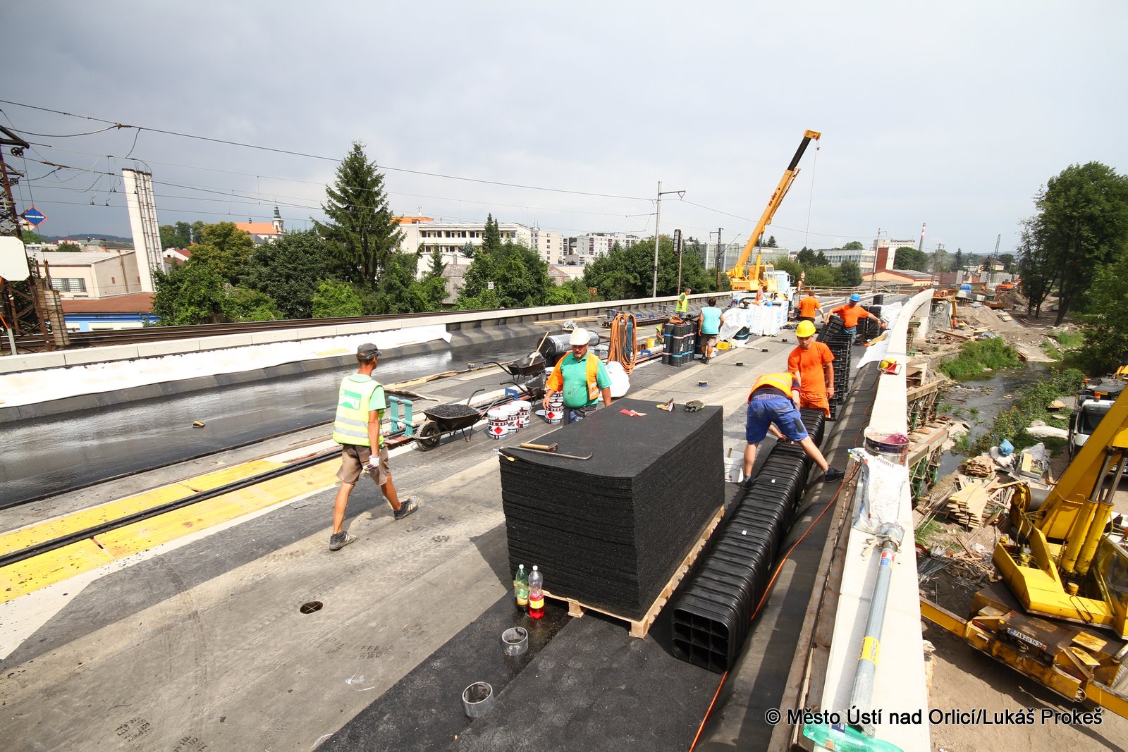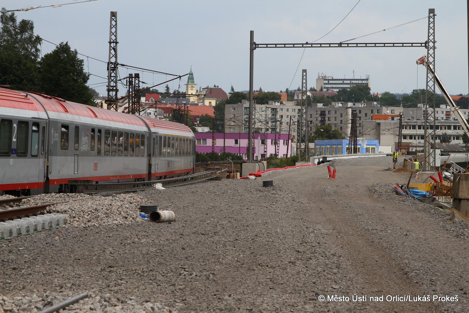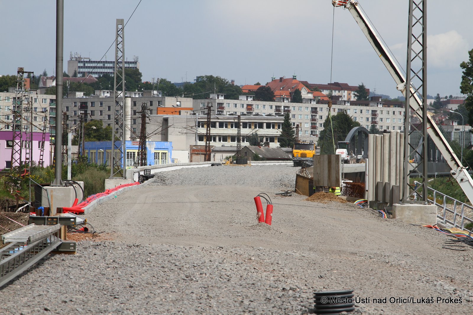 Přinášíme aktuální informace a postup stavby "Průjezd železničním uzlem Ústí nad Orlicí". Železniční estakáda vedoucí přes Mendrik je stavebně již hotova a v současné době se pracuje na pokládce samotné železnice. Estakáda půjde do provozu začátkem září, kdy po ní začnou jezdit vlaky a nahradí tak stávající kolejiště, které se následně začne odtěžovat a v podstatě téměř celé zmizí. Pod dohledem památkářů bude rozebrán také pěti obloukový most.