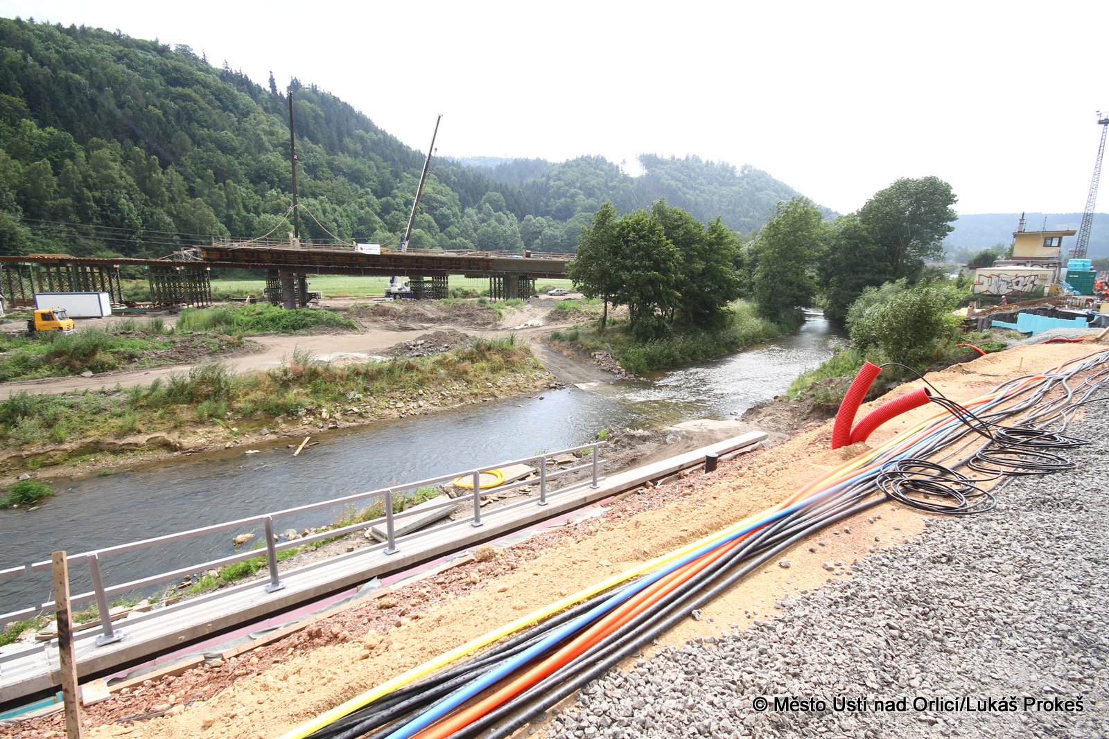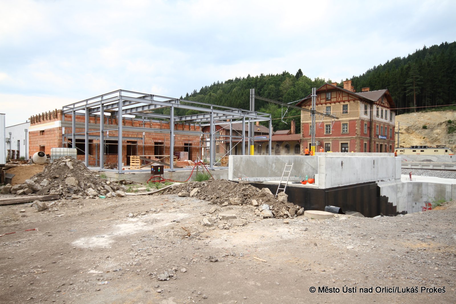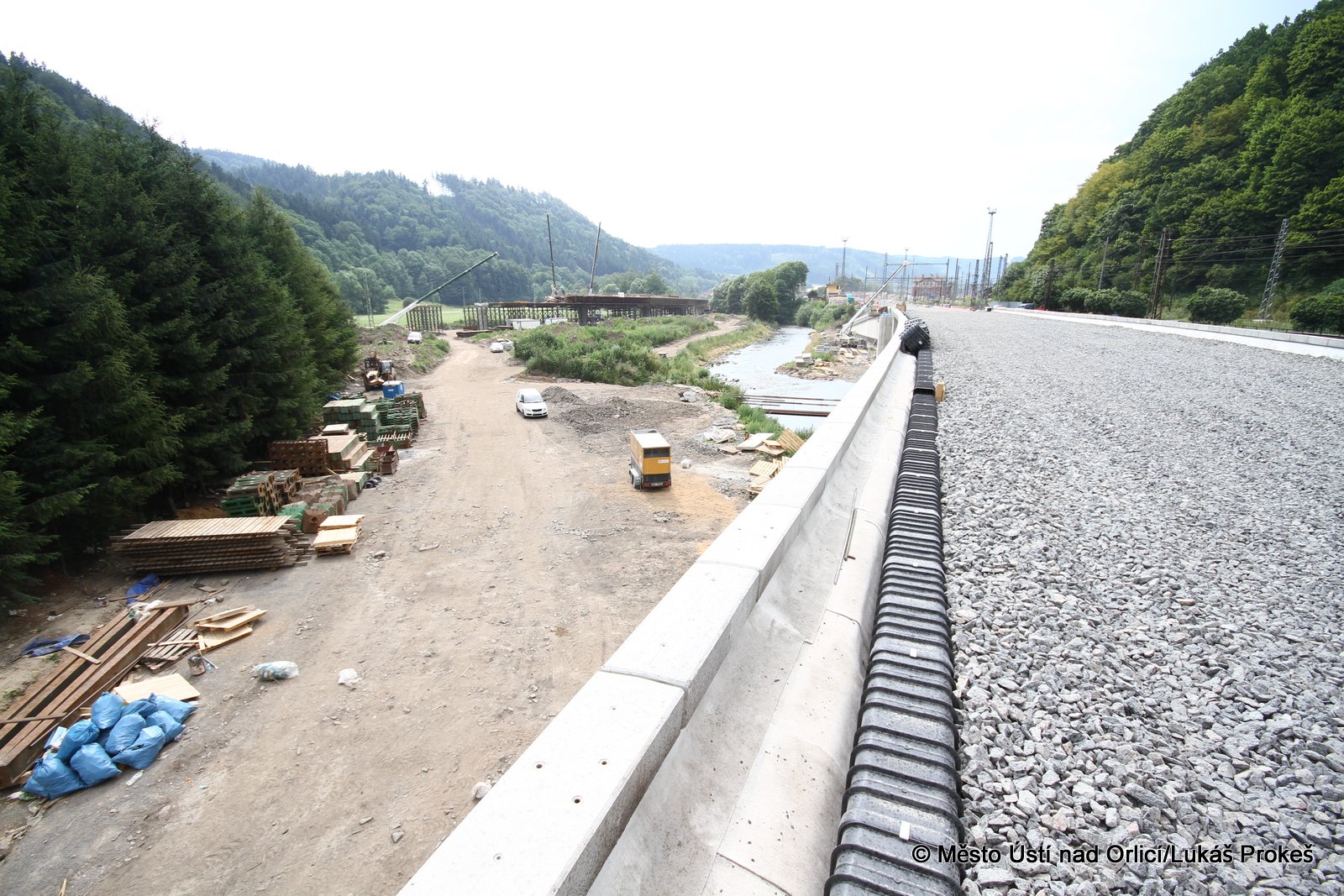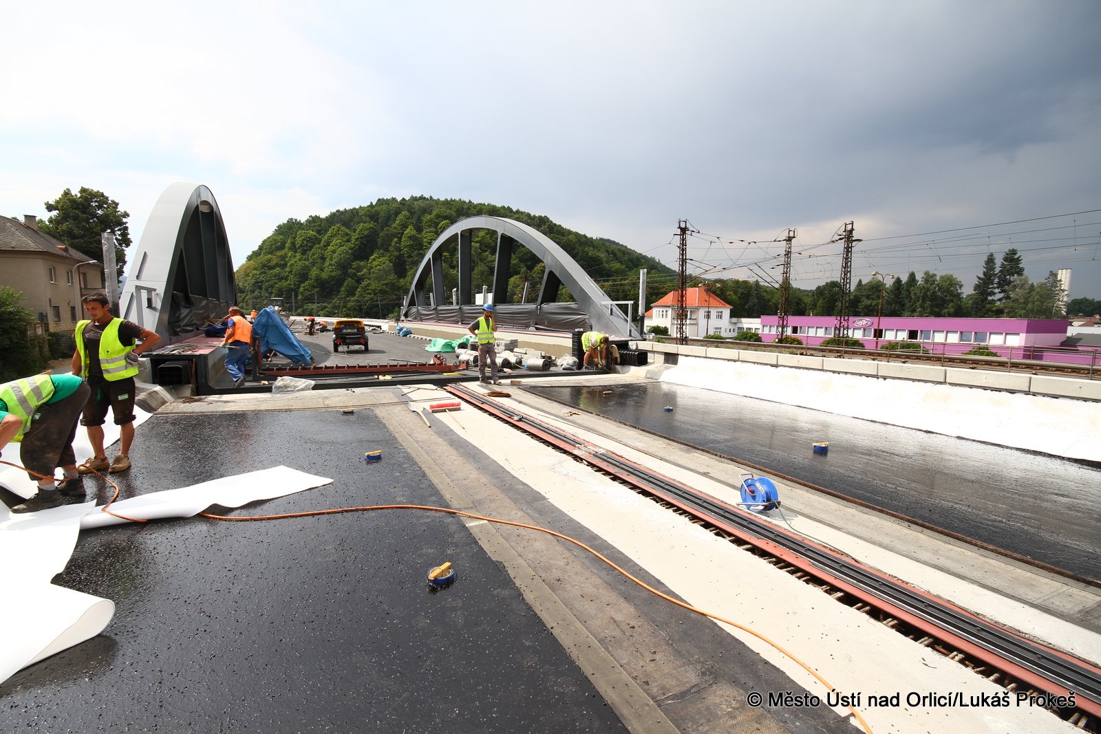 Přinášíme aktuální informace a postup stavby "Průjezd železničním uzlem Ústí nad Orlicí". Železniční estakáda vedoucí přes Mendrik je stavebně již hotova a v současné době se pracuje na pokládce samotné železnice. Estakáda půjde do provozu začátkem září, kdy po ní začnou jezdit vlaky a nahradí tak stávající kolejiště, které se následně začne odtěžovat a v podstatě téměř celé zmizí. Pod dohledem památkářů bude rozebrán také pěti obloukový most.