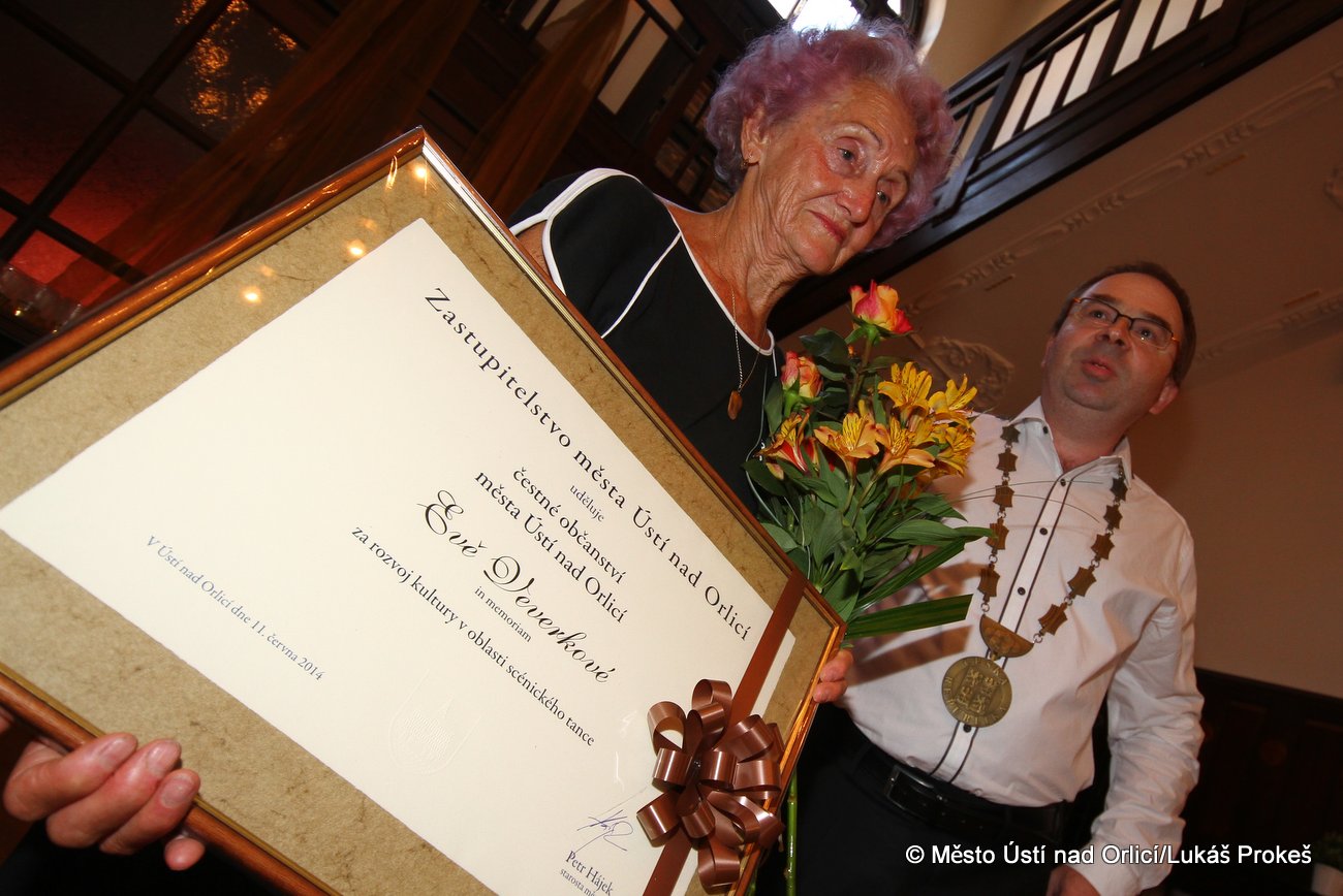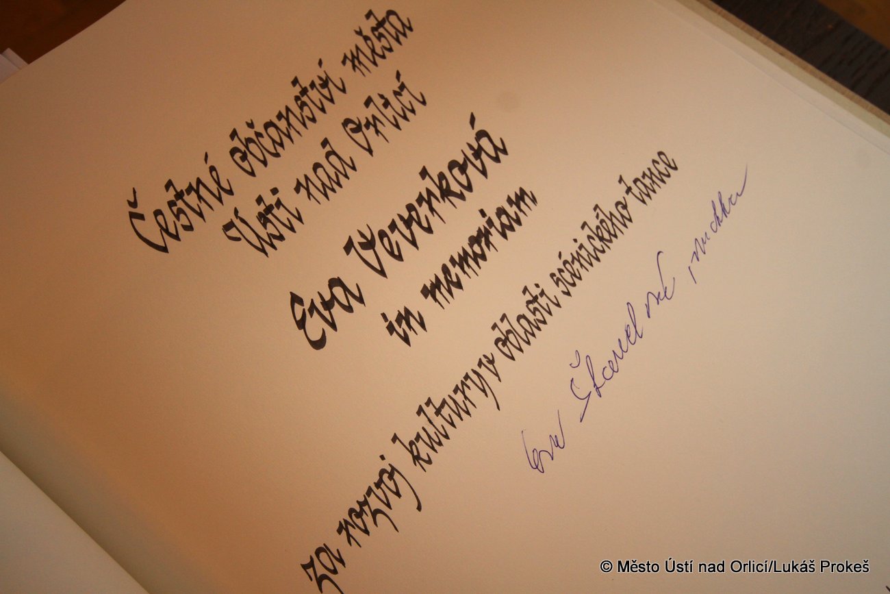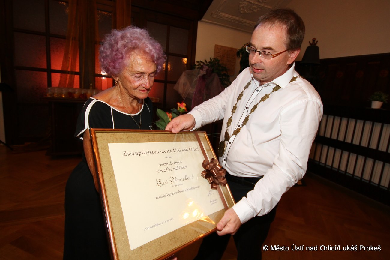 Ve středu 11. června se v Hernychově vile uskutečnilo odhalení plastiky nazvané "Tančící Eva" věnované coby pocta Evě Veverkové, zakladatelce souboru C-Dance a její mamince Evě Štanclové, zakladatelce tanečního oboru v Ústí nad Orlicí. Autorem kované plastiky na pískovci je kovář František A. Bečka. Zároveň předal starosta města Petr Hájek Evě Štanclové čestné občanství města Ústí nad Orlicí in memoriam Evě Veverkové. Plastika bude trvale umístěna v prosklené části Hernychovy vily.