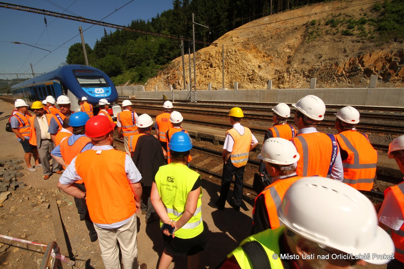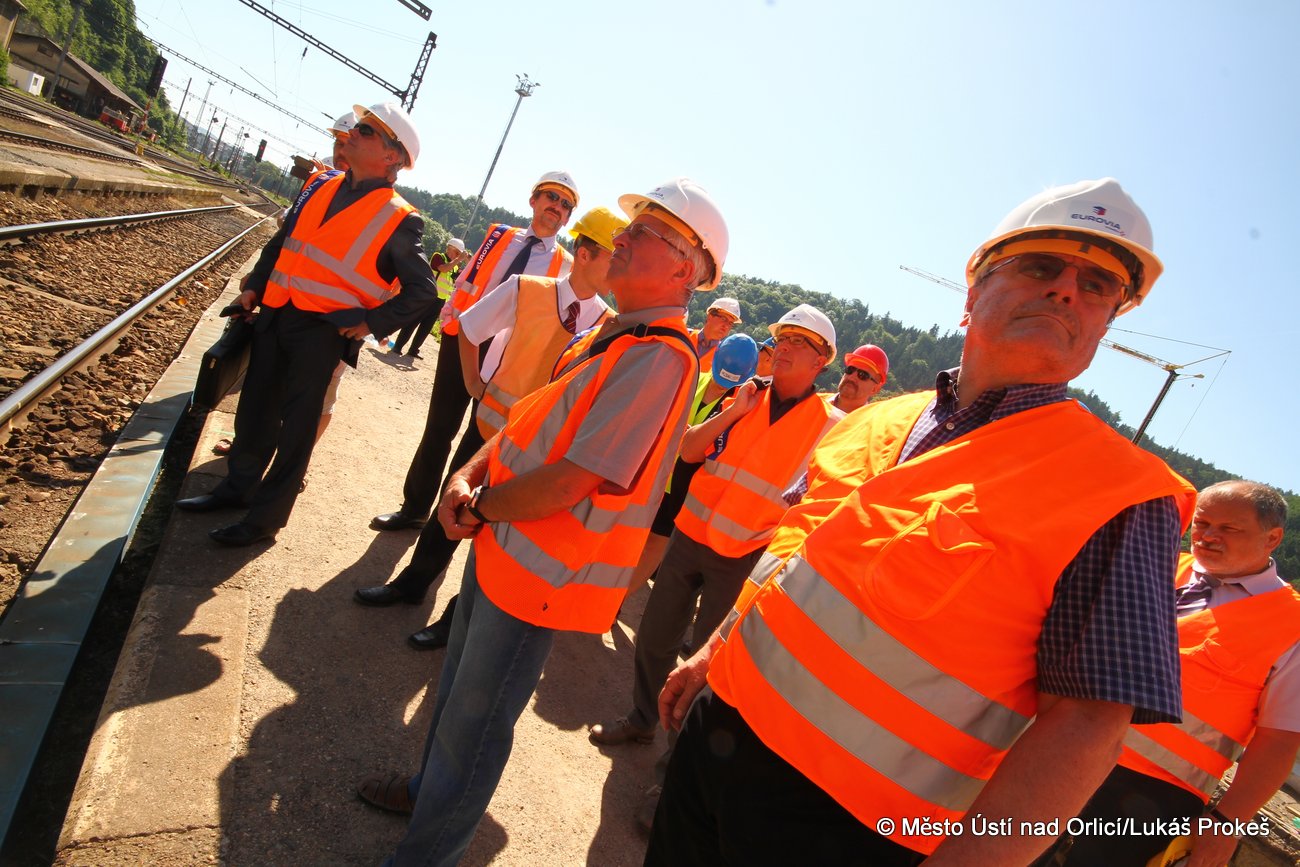 Ředitelský kontrolní den stavby "Průjezd železničním uzlem Ústí nad Orlicí" spojený s prohlídkou celé stavby se uskutečnil v pondělí 9. června. Úderem 10 hodiny dopolední přijel ke staré výpravní budově zvlášť vypravený vlak, který do Ústí nad Orlicí přivezl zástupce několika institucí a společností. Ve čtyřicetičlenné skupině nechyběl ani generální ředitel Správy železničních dopravních cest a ředitel Stavební správy Olomouc, dále zástupci České komory autorizovaných inženýrů a techniků, Hospodářské komory, náměstek hejtmana Pardubického kraje pro dopravu, starosta našeho města, zástupci Českých drah a zhotovitele stavby.