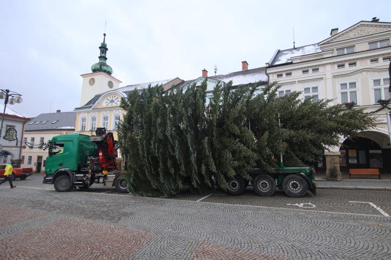 Letošní vánoční strom byl na Mírové náměstí dovezen v sobotu 25. listopadu. Původně 15 metrů vysoký a 32 let starý smrk byl dovezen z lokality „u starého hangáru“ a městu jej daroval soukromý majitel. Kvůli své značné šířce si smrk svou cestu městem náležitě užil a stavění na náměstí si nenechala ujit řada diváků. Pro náměstí byl smrk pokrácen na 13 metrů a v příštím týdnu jej čeká zdobení.