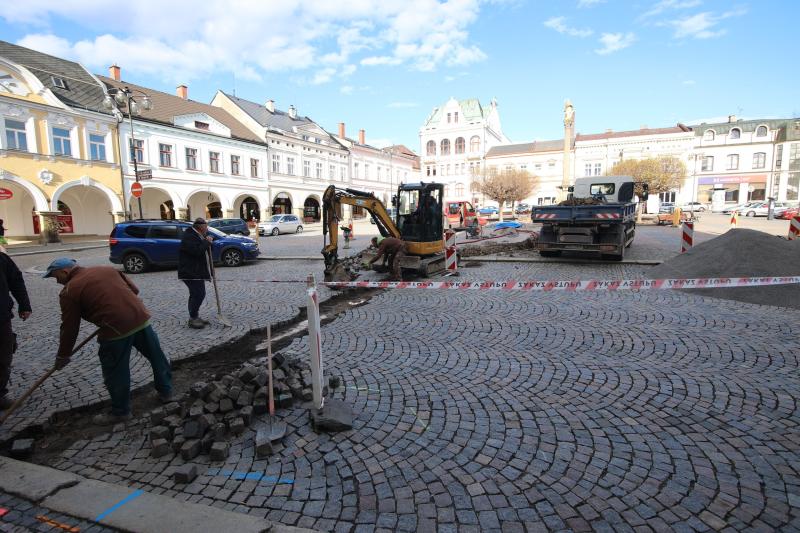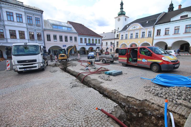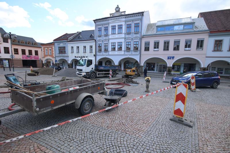 Na Mírovém náměstí byly zahájeny stavební práce, které souvisí s instalací dvou nových podzemních rozvaděčů. Ty budou využívány při venkovních akcích a díky tomu odpadne provizorní rozvod elektrické energie přes komunikaci. Napojení nových rozvaděčů bude provedeno z instalační krabice umístěné v nerezovém sloupku v podloubí čp. 7. Práce si tedy vyžádají nejen překop středu náměstí, ale také místní komunikace a dočasné omezení provozu a zabrání parkovacích míst. Současně se s rozvodem elektrické energie přivádí k centrálnímu záhonu u Mariánského sloupu také vodovodní přípojka.