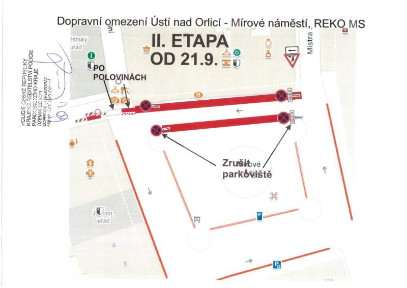 - Druhá etapa: od 21.09.2024 v ulici M. J. Kociana směrem k radnici