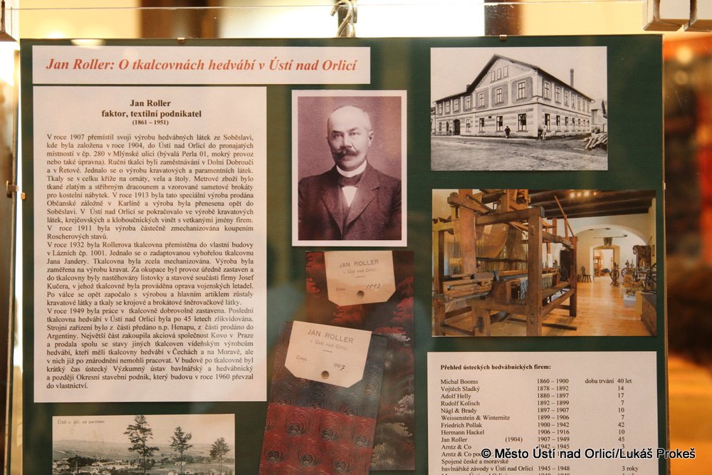 První z nich je věnovaná 125 výročí narození učitele, hedvábníka a vynálezce Jana Rollera. Ten se v Ústí nad Orlicí narodil v roce 1889 v rodině ručního tkalce a mistra v tkalcovně hedvábí. Bylo mu uděleno přes 200 patentů a autorských osvědčení převážně na řešení problémů v textilní výrobě především předení, tkaní a výroba netkaného textilu.