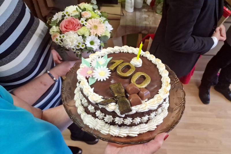 K jejímu významnému jubileu jí přišli popřát starosta Petr Hájek, místostarosta Jiří Preclík a zaměstnanci domova. Paní Felgrové byla předána květina a čokoládový dort zdobený symbolem "100", který dokreslil slavnostní atmosféru. Oslavenkyně přijala gratulace s úsměvem a dobrou náladou.