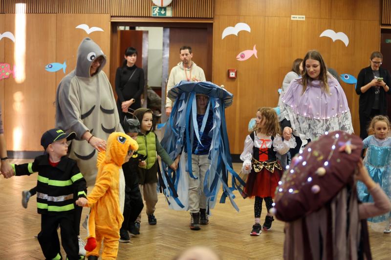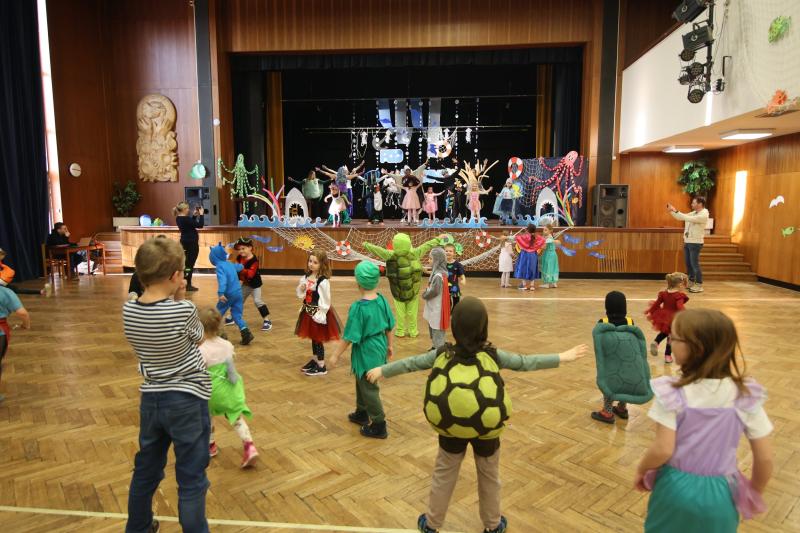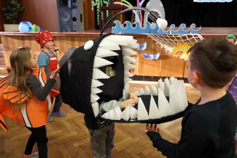 Kostýmy byly pečlivě propracované, od roztomilých klaunů očkatých po obávané hlubinné ryby s velkými zuby. Nechyběla ani chobotnice a dekorace v podobě mořských vln, rybiček a potápěčských doplňků. Celé odpoledne bylo plné zábavy, tance a her.