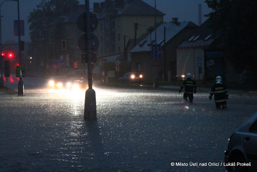 V neděli 4. srpna mezi půl osmou a devátou večer se městem Ústí nad Orlicí prohnala silná průtrž mračen doprovázená silným větrem. Během několika minut byly zaplavena Královehradecká ulice na Podměstí, kde zůstalo uvězněno několik aut. Poplach byl vyhlášen všem jednotkám sborů dobrovolných hasičů města. Ti zasahovali u zatopených aut, ze kterých vyprošťovali několik řidičů včetně malých dětí, které byly v zatopeném vozidle uvězněny. Přívaly vody byly tak silné, že na mnoha místech města nestačila kapacita kanalizace a voda vytlačila kanalizační poklopy.