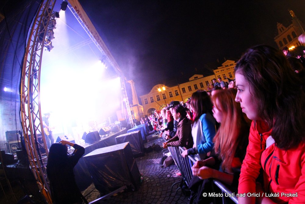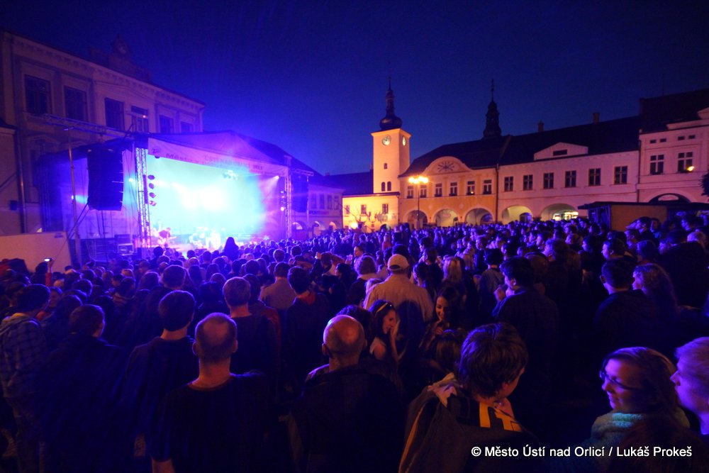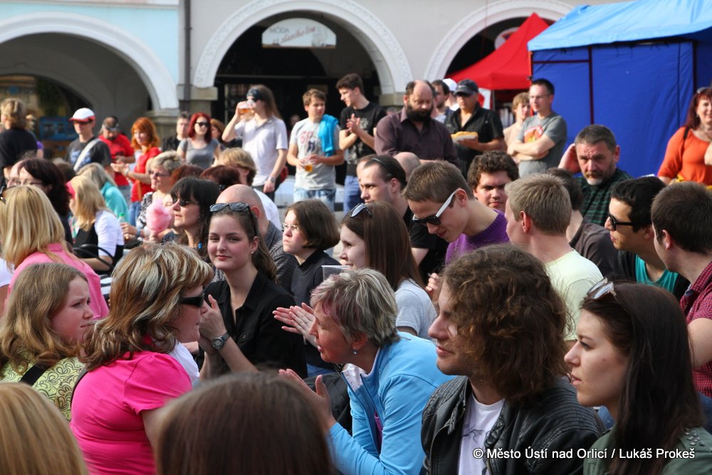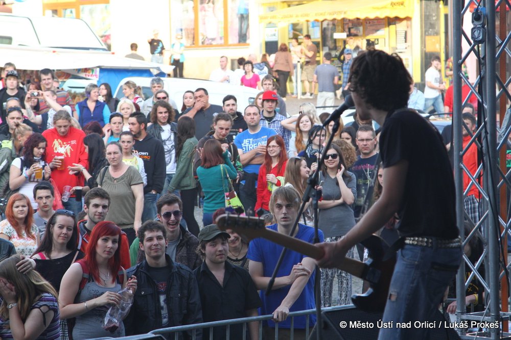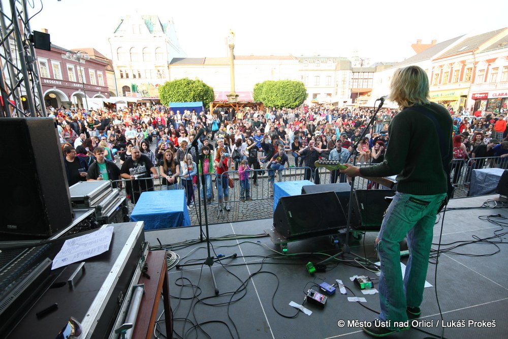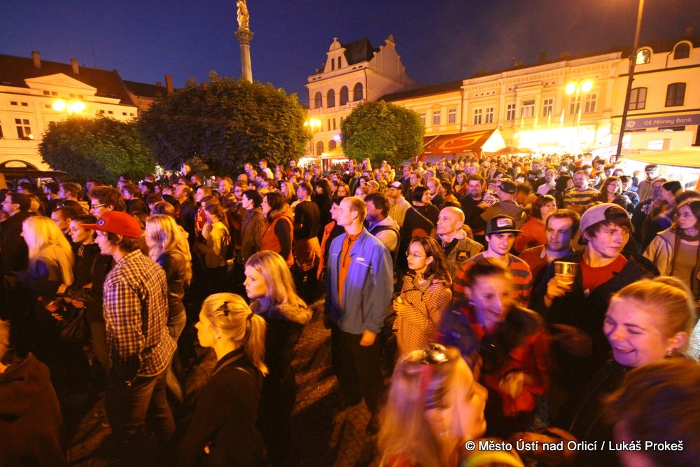 Na Mírovém náměstí se v průběhu odpoledne a podvečera vystřídalo 5 rockových skupin. Večer pak patřil vystoupení kapely COCOTTE MINUTE a náměstí zcela zaplnilo vystoupí kapely UDG. Ta u převážně mladých diváků způsobila doslova davové šílenství. Celý páteční program zakončila kapela ZUPPER.