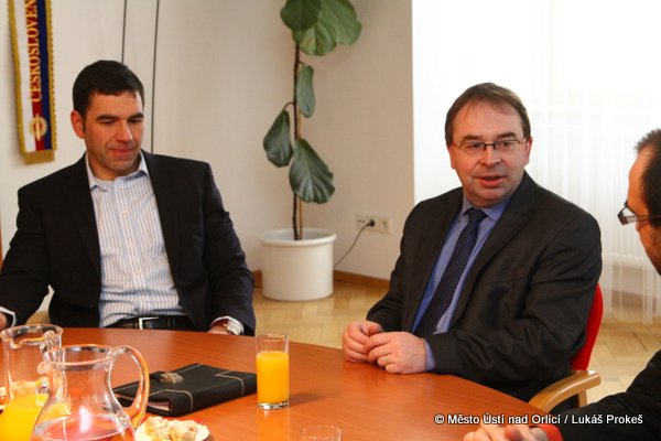 Ve čtvrtek 16. února se na ústecké radnici uskutečnila pracovní návštěva poslanců PSP ČR Radima Jirouta a Jana Čechlovského se starostou města Petrem Hájkem. Jednalo se o situaci kolem Orlickoústecké nemocnice a postoj Pardubického kraje, coby zřizovatele nemocnice, kde dochází ke změnám v nominacích do dozorčích a správních rad všech pěti krajských nemocnic. Řeč přišla také na modernizaci železničního uzlu v Ústí nad Orlicí v závislosti na rekonstrukci historické výpravní budovy. Starosta poslance informoval o současném stavu stavby a plánech na možné využití případně rekonstrukci staré výpravní budovy.