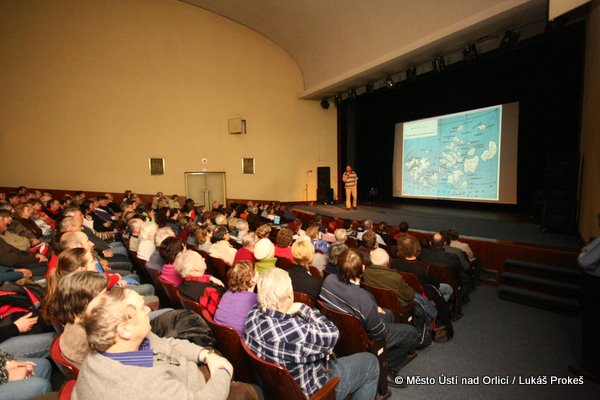 „V Ústí jsem neudělal přednášku 15 let, protože si myslím, že je spousta lidí, kteří se tím živí. Já se besedami neživím a dělám je zadarmo. Pokud někde dělám besedu, tak se vždy sjede spousta lidí, které osobně znám, takže to dělám v podstatě pro kamarády“, řekl k besedě Rudolf Krautschneider, který se narodil v roce 1943 ve Vídni. Postavil několik lodí, plavil se po všech mořích, mj. na plachetnici obeplul Antarktidu. Napsal zhruba desítku knih (některé byly přeloženy do polštiny, němčiny a angličtiny) a natočil několik dokumentárních filmů.