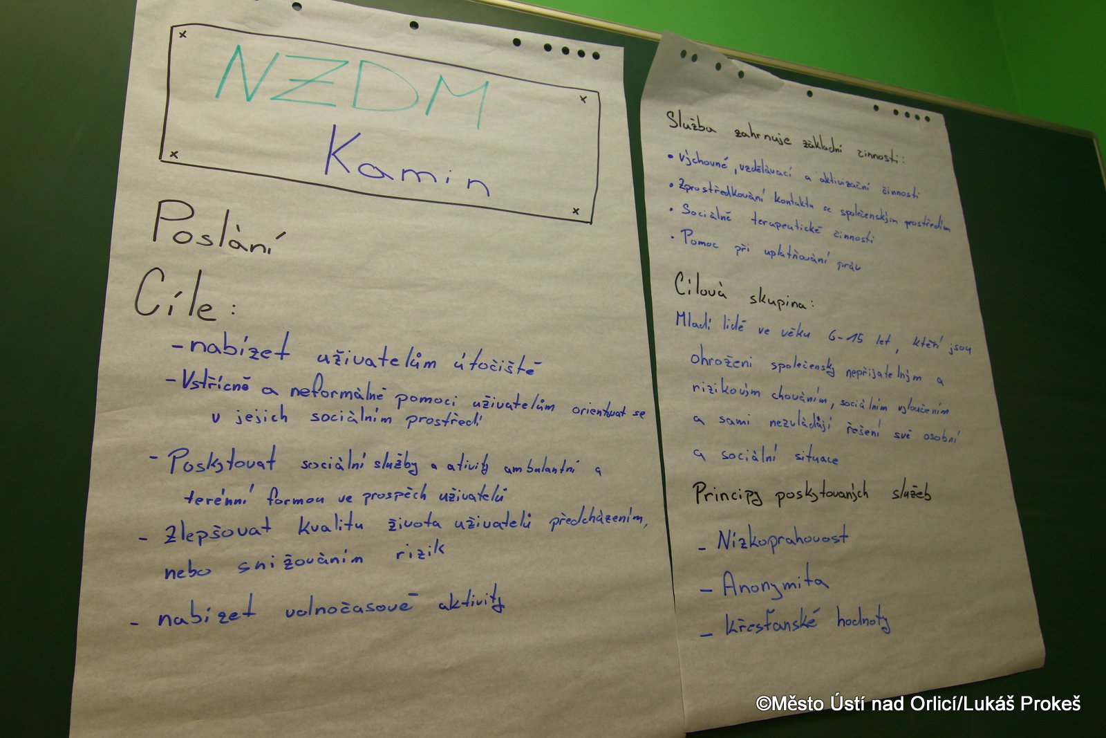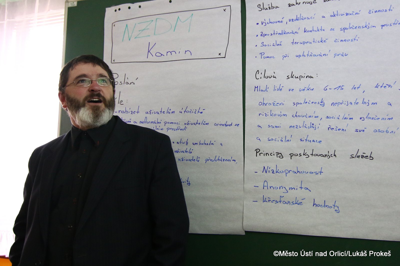 Po 3 letém období, kdy byl na základě potřeby našeho města otevřen Volnočasový klub Kamin, se od 1. ledna 2016 podařilo s Pardubickým krajem vyjednat registrování sociální služby nízkoprahové zařízení pro děti a mládež. Důvodem této změny byly jednotlivé případy dětí, se kterými se pracovníci klubu setkávali a mnohokrát vyhodnotili, že již nejde pouze o zaplnění volného času, ale o nutné odborné řešení složitých sociálních situací dětí. Radní Pardubického kraje, Pavel Šotola, během slavnostního otevření velmi vysoce hodnotil novou sociální službu a zejména to, že vznikla z potřebnosti a z dlouhodobé práce s dětmi a mládeží. Následně se ujal slova i dlouhodobý podporovatel myšlenky na založení NZDM v Ústí, Martin Vlasák z Rychnova nad Kněžnou, který podobnou službu otevřel v sousedním okresním městě před několika lety. Za vedení města Ústí nad Orlicí, které se rozhodlo novou službu samozřejmě podpořit, popřál místostarosta Jiří Preclík dlouhý dech a spokojené klienty.