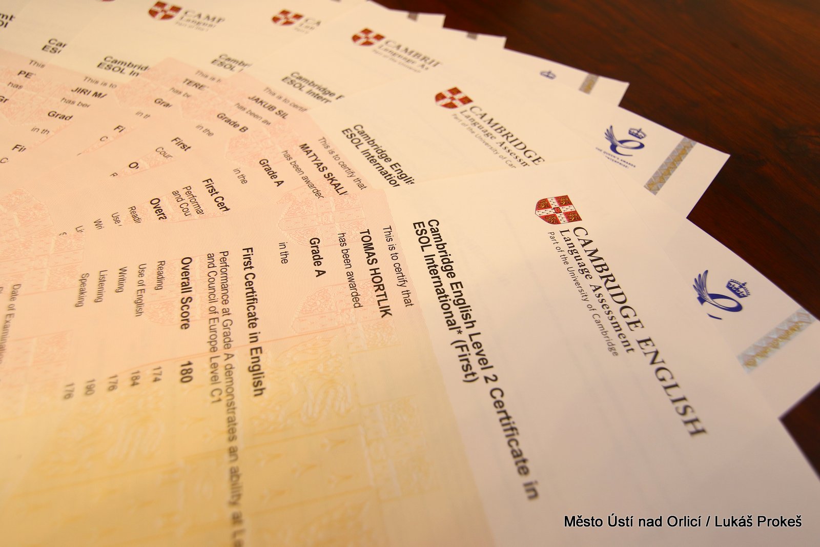 V úterý 6. září byly v obřadní síni ústecké radnice předávány certifikáty nejprestižnější mezinárodní Cambridge English zkoušky pro nerodilé mluvčí. Certifikáty za úspěšné složení zkoušky převzali studenti základních a středních škol v Ústí nad Orlicí a dva dospělí. Cambridge zkoušky se v našem městě konaly podruhé za spolupráce 1.jazykové školy ÚO, která je autorizovaným partnerem Evropského centra jazykových zkoušek v Č.Budějovicích, ZŠ Komenského a ZŠ Bří Čapků jako partnerských škol..