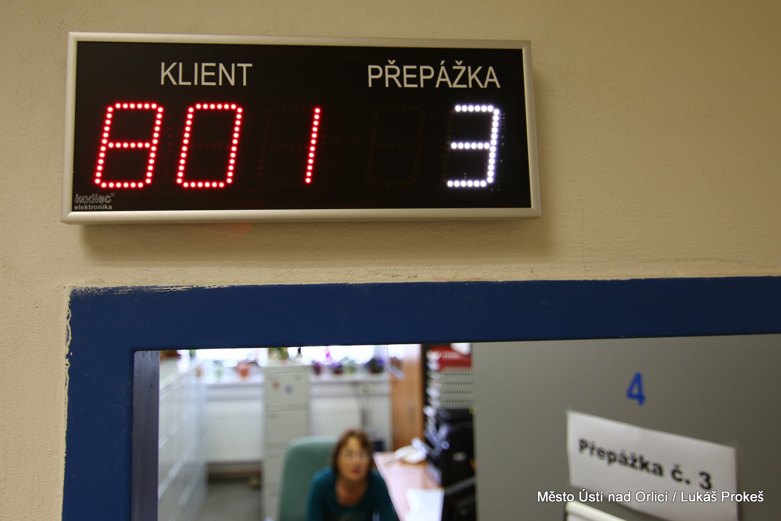 V rámci zkvalitňování služeb na Městském úřadu Ústí nad Orlicí byl instalován nový vyvolávací systém, a to na úseku občanských průkazů a cestovních dokladů v budově č. p. 7 na Mírovém náměstí a dále na pracovišti evidence řidičů v ulici Dělnická č. p. 1405. Toto zařízení umožní snadnou orientaci, plynulejší a přehlednější odbavování klientů.