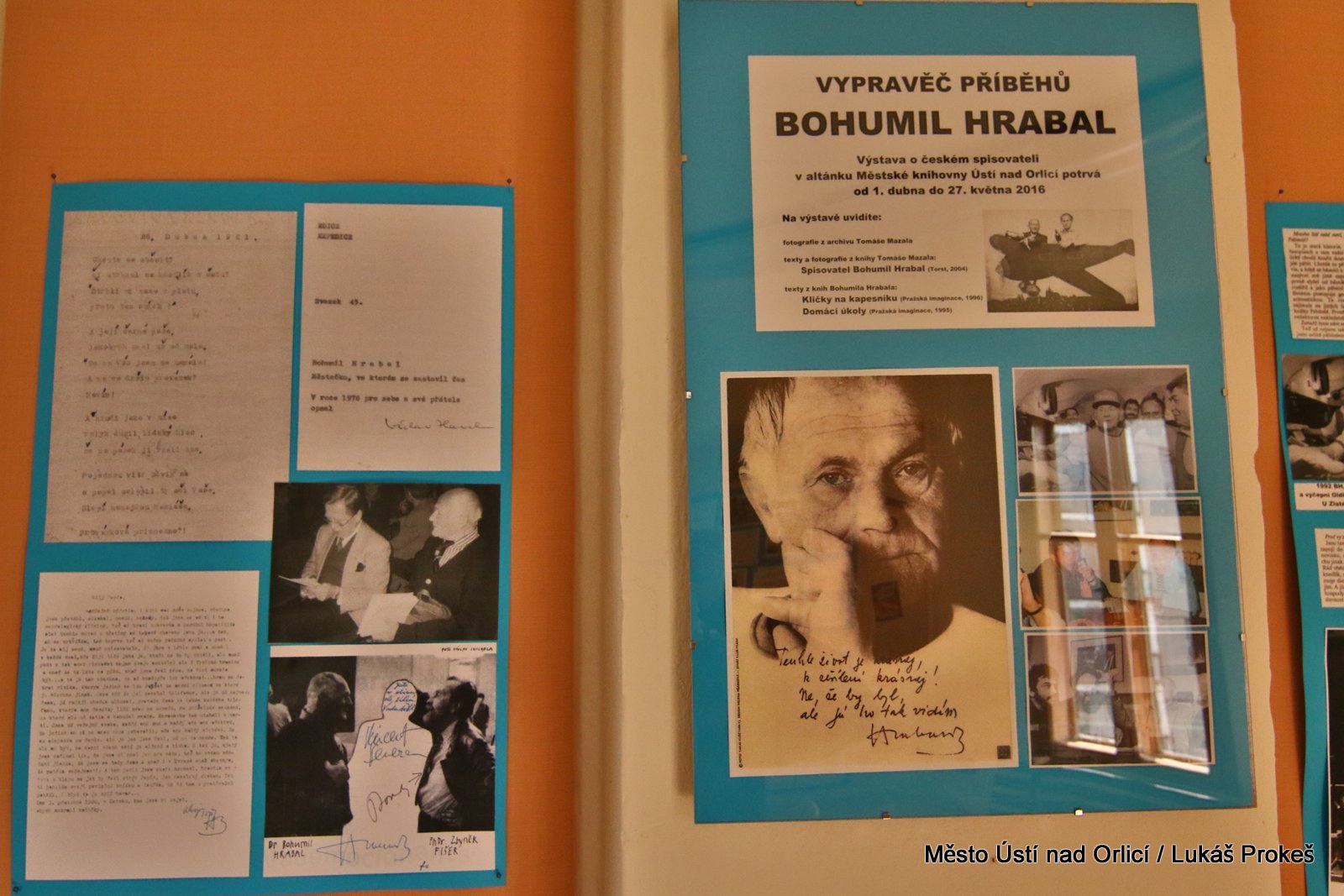 Od 1. dubna opět ožívá altán u Městské knihovny v Ústí nad Orlicí. Letošní první výstava nazvaná "Vypravěč příběhů - Bohumil Hrabal" představuje fotografie a texty z archivu Tomáše Mazala a mapuje život a dílo jednoho z nejvýznamnějších a nejosobitějších spisovatelů druhé poloviny 20. století. Tomáš Mazal bude hostem knihovny ve čtvrtek 19. května, kdy od 18 hodin bude vyprávět osobní vzpomínky na Bohumila Hrabala. Tato výstava bude v altánu umístěna do 27. května.