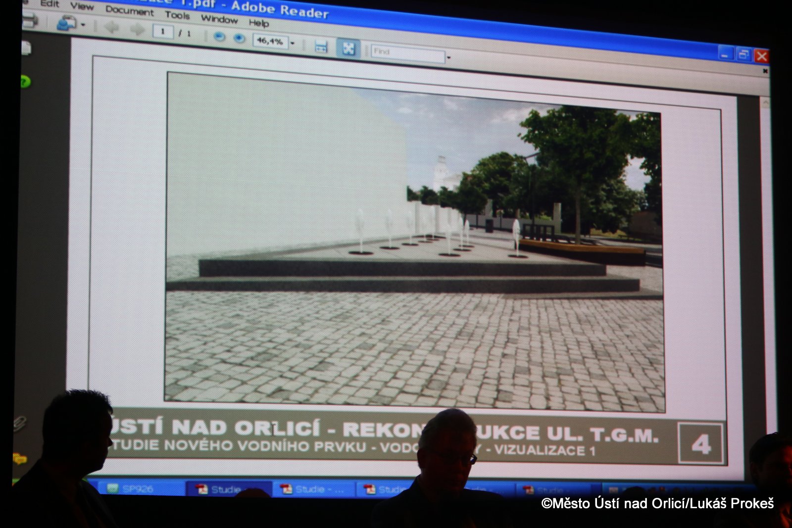 Dále starosta veřejnost seznámil se stavem rekonstrukce ulice T.G.M. a prezentoval nový vodní prvek, který zde bude umístěn. Vysvětlil také postup jednotlivých prací, které jsou leckdy vázány na pozemky, které nejsou v majetku města a je tedy třeba dořešit složité majetkoprávní vztahy. Z pohledu veřejnosti tak dochází v některých částech stavby k nelogickým stavům, které jsou závislé právě na majetkových vztazích.