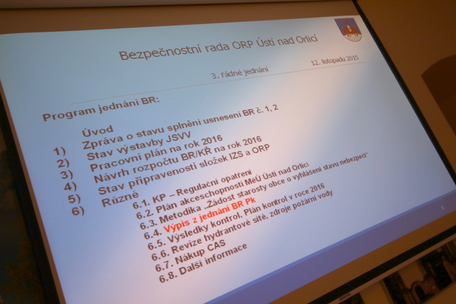 Ve čtvrtek 12. listopadu se uskutečnilo plánované 3. jednání Bezpečnostní rady města Ústí nad Orlicí. Program jednání byl pestrý a náročný.