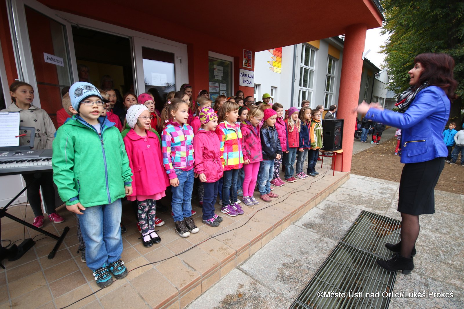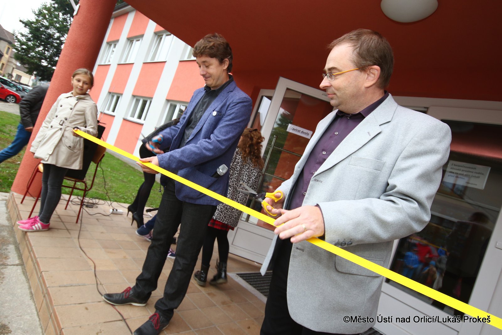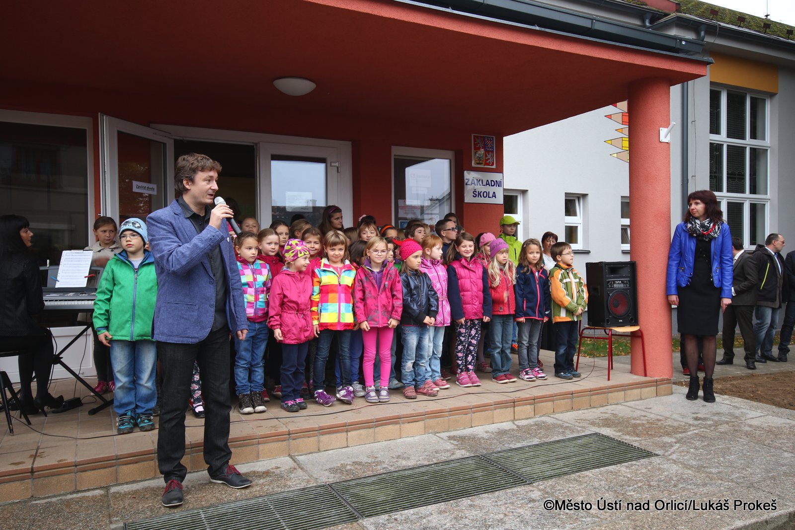 Při slavnostním otevírání také starosta poděkoval všem, díky kterým se projekt podařilo zdárně dokončit, zvláště pak dětem. Před přestřižením pásky vystoupil školní pěvecký soubor Zlatý klíček.