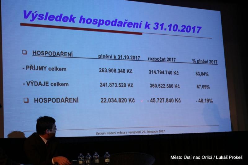 Na závěr starosta zhodnotil hospodaření města k 31. 10. 2017, kdy příjmy města dosáhly 83 procent celkového plánovaného plnění a výdaje 67 procent s přebytkem hospodaření 22 milionů korun.
